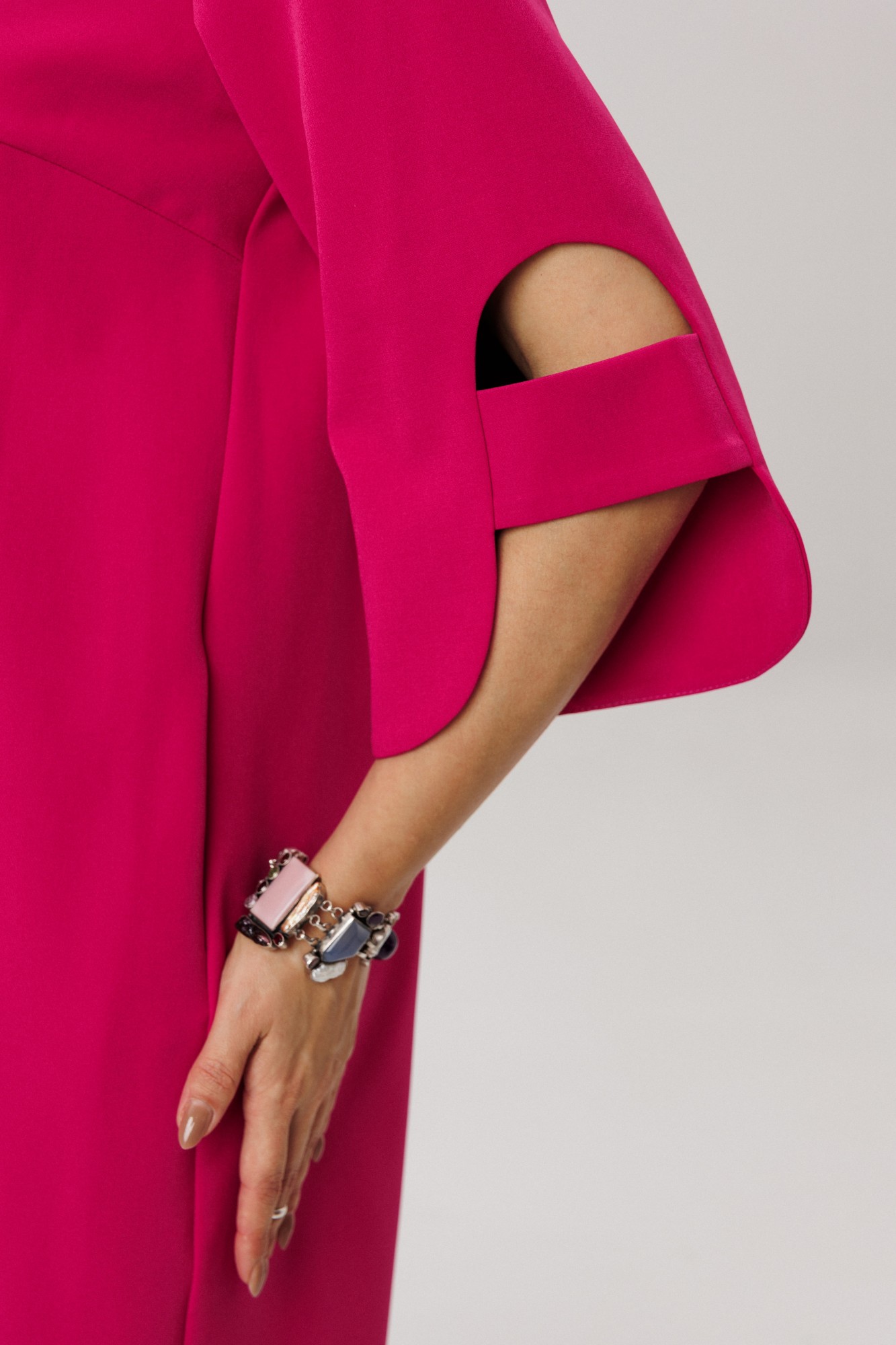 Его подлинной жемчужиной является рукав с фигурным низом и изящной перемычкой - архитектурный элемент, придающий силуэту воздушный объем и скульптурную выразительность. Практичность встречает утонченность в боковых карманах, скрытых в швах.