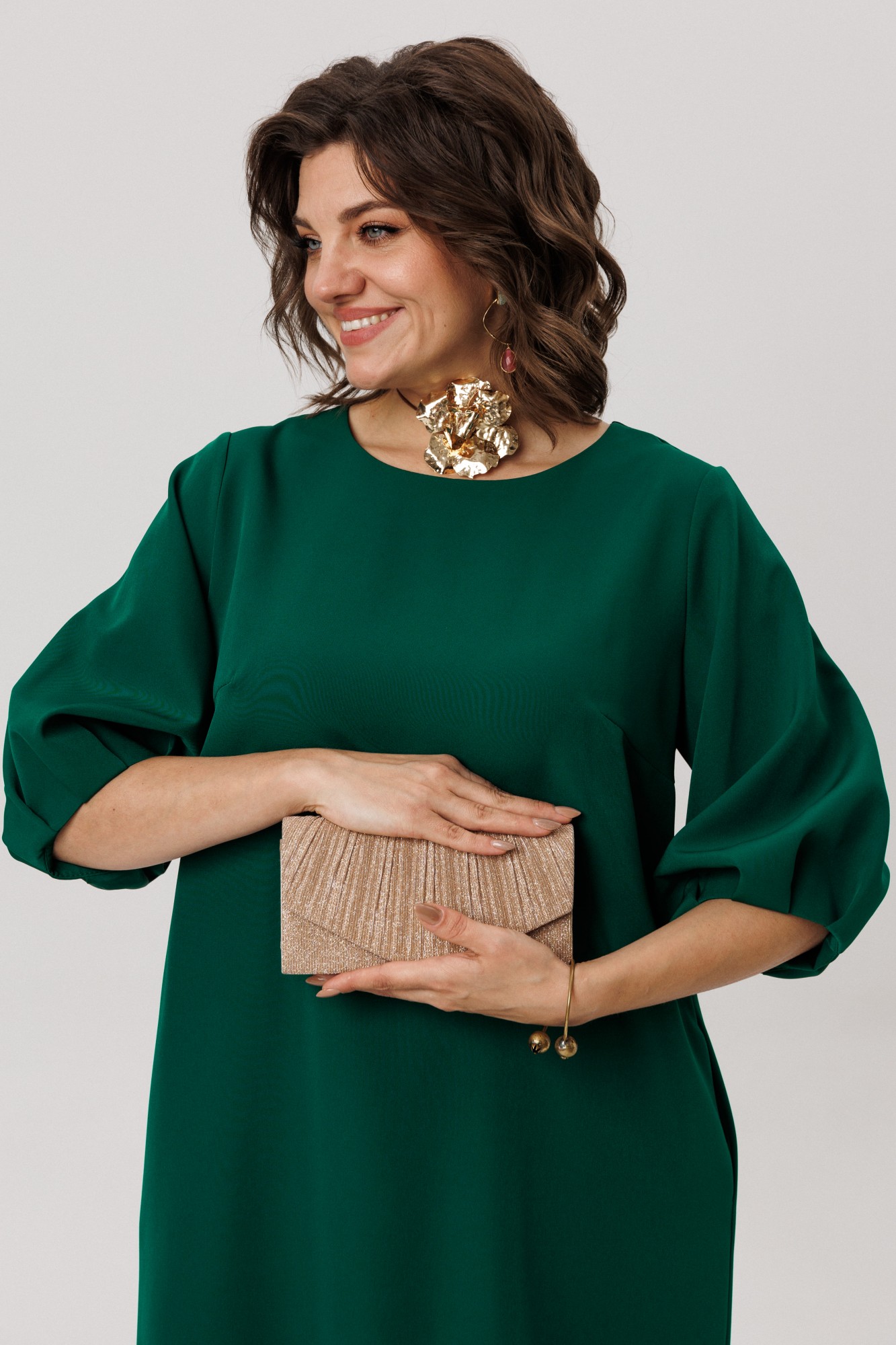 Мягкий рукав платья украшен у запястья изящной сборкой, придающей образу лёгкость и утончённость. Идеальная длина, прикрывающая колени, создана для повседневного комфорта, сохраняя при этом элегантность силуэта.