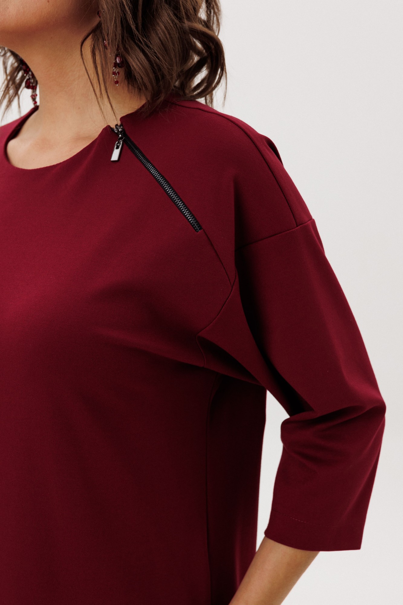 Спущенная линия плеча и свободный рукав три четверти подчеркивают изящество запястья и не сковывают движения.