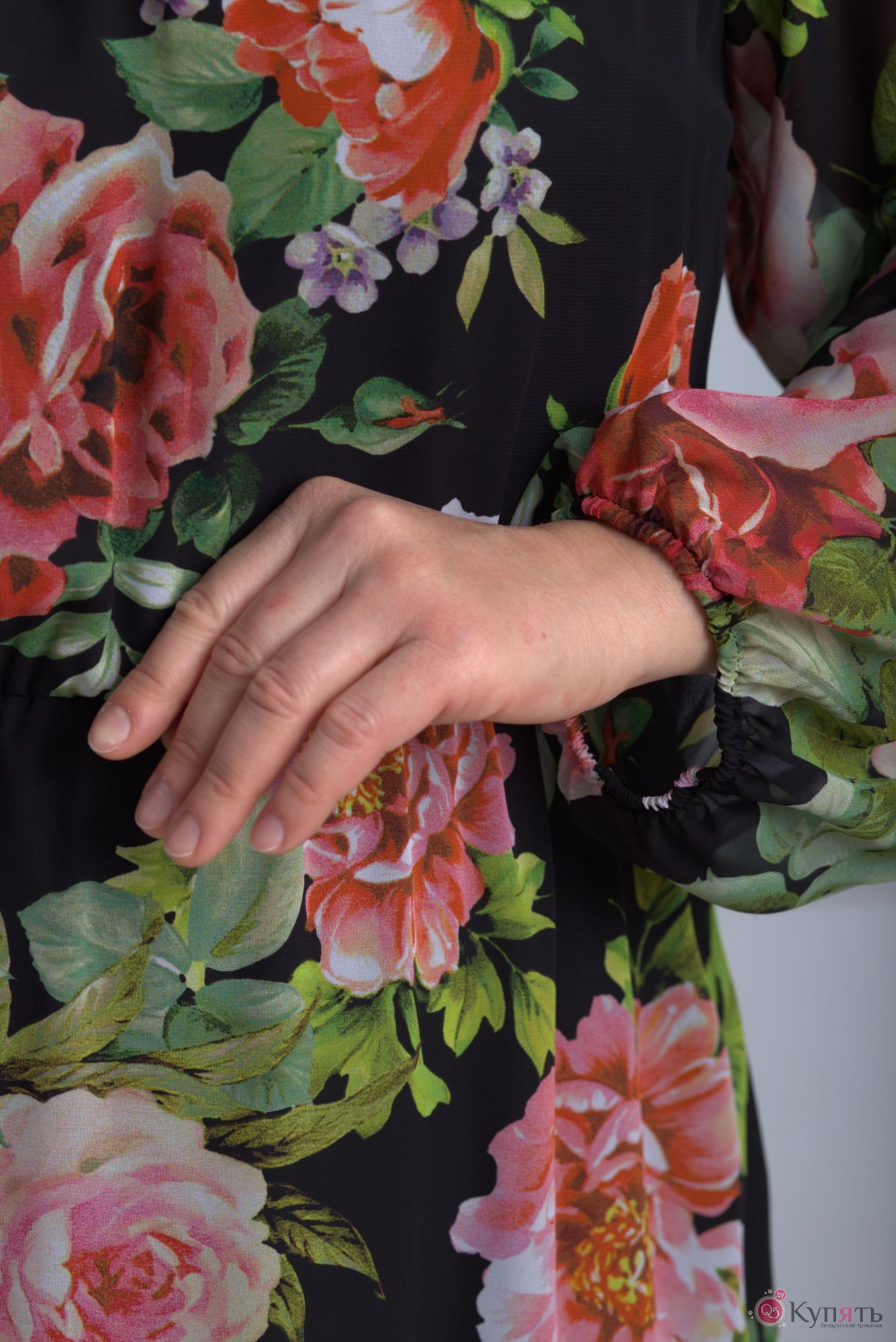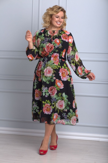 Платье Anelli 642 черный в розы