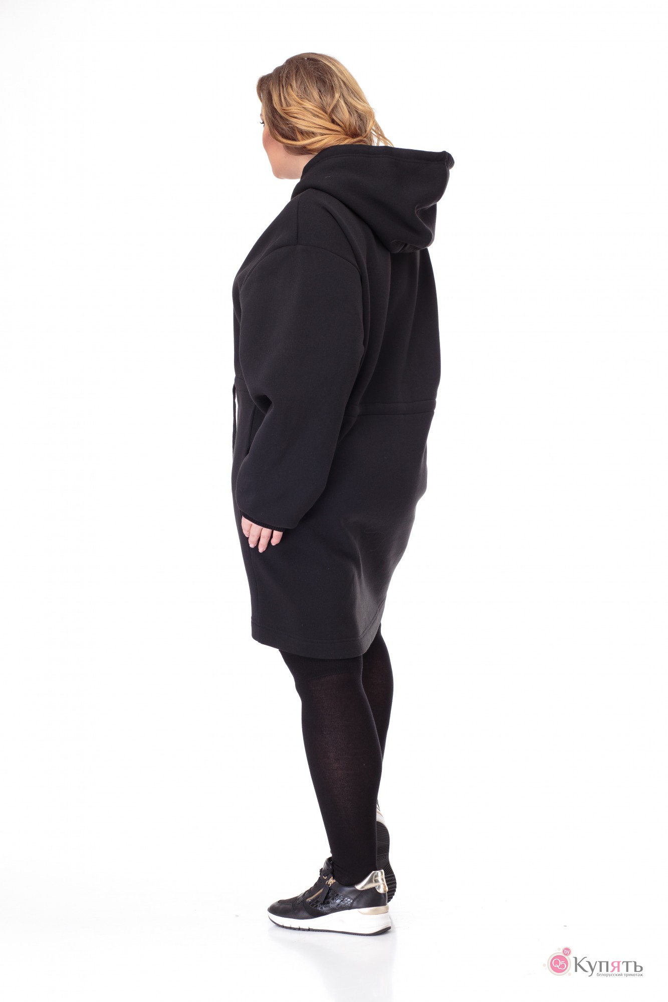 За удобство отвечает свободный крой, наличие капюшона, длинные рукава на манжете, функциональные карманы в боковых швах и регулируемая кулиска со шнурком в области талии.