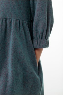 Свободного покроя платье ,со слегка завышенной линией талии.Застежка на пуговицы по переду верхней части платья.Втачной укороченный рукав,присборенный по низу широкой эластичной тесьмой.Нижняя часть платья присборена от линии притачивания к лифу.