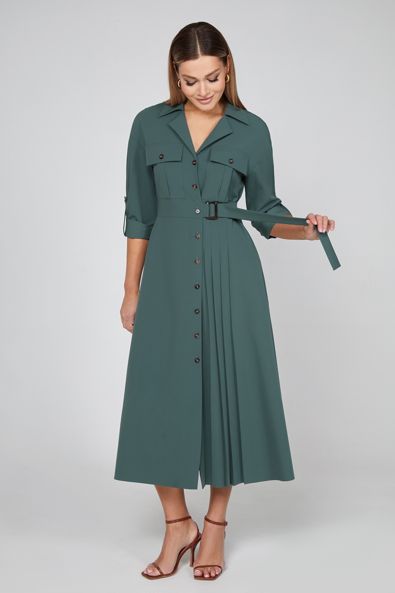 Просто фантастика! Это изысканное платье длиной макси с женственным кроем идеально дополняется аккуратным воротником с лацканами и пояском с пряжкой. Дизайн дополняется карманами с клапанами на груди, спущенной линией плеч с притачными рукавами с манжетами, которые при желании можно подвернуть и зафиксировать при помощи пат и пуговиц. Застежка на пуговицы по всей длине придаёт ему яркий штрих, а карманы в боковых швах добавляют функциональности. Вертикальные складки по детали переда завершают шикарный образ. Высококачественная испанская эластичная ткань также гарантирует износостойкость.