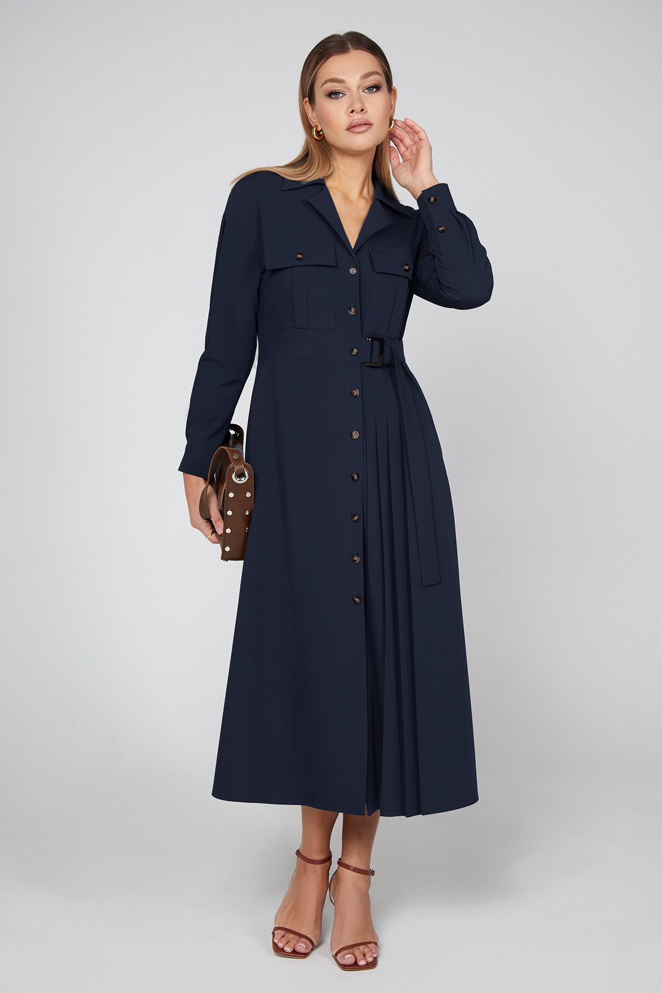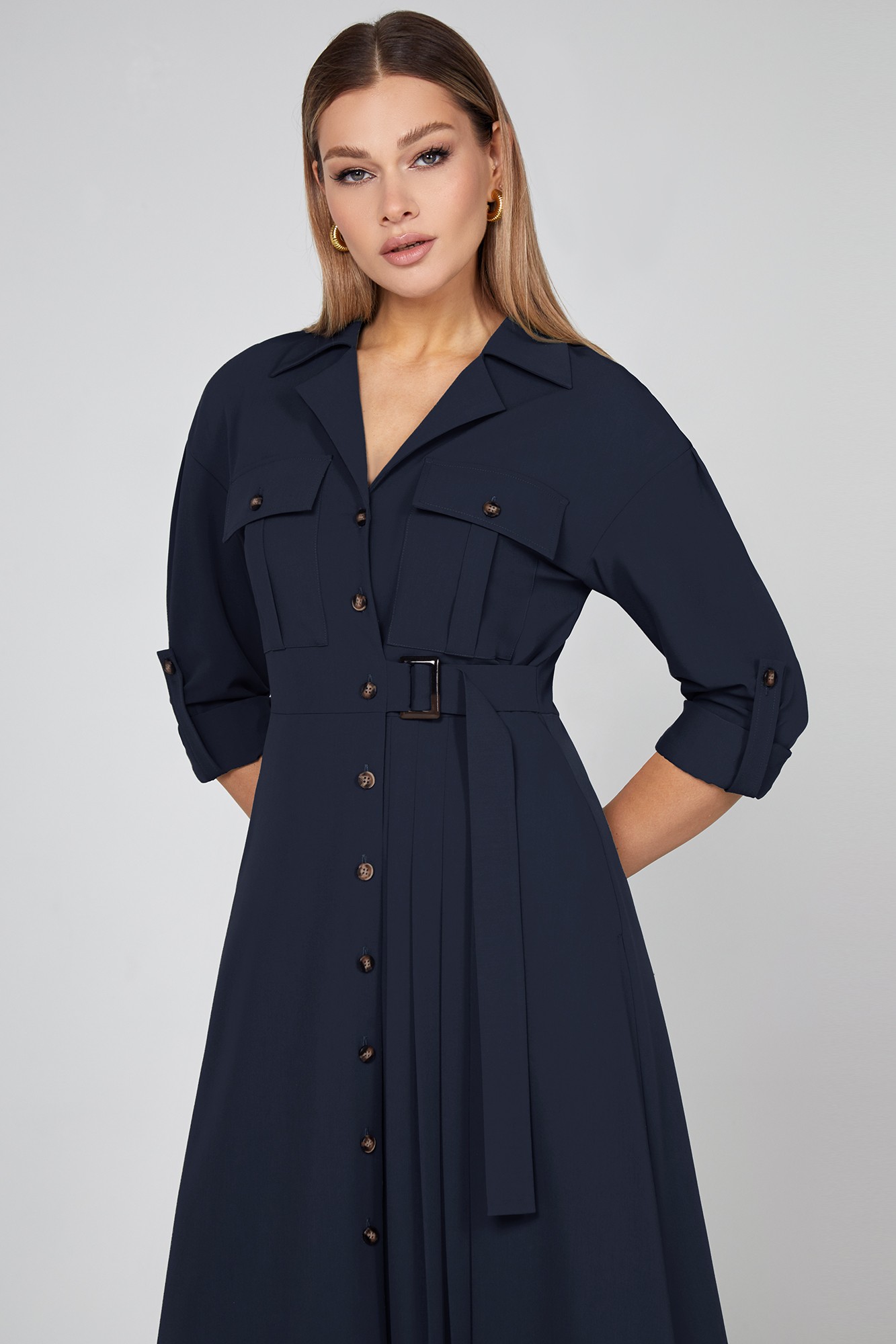 Просто фантастика! Это изысканное платье длиной макси с женственным кроем идеально дополняется аккуратным воротником с лацканами и пояском с пряжкой. Дизайн дополняется карманами с клапанами на груди, спущенной линией плеч с притачными рукавами с манжетами, которые при желании можно подвернуть и зафиксировать при помощи пат и пуговиц. Застежка на пуговицы по всей длине придаёт ему яркий штрих, а карманы в боковых швах добавляют функциональности. Вертикальные складки по детали переда завершают шикарный образ. Высококачественная испанская эластичная ткань также гарантирует износостойкость.