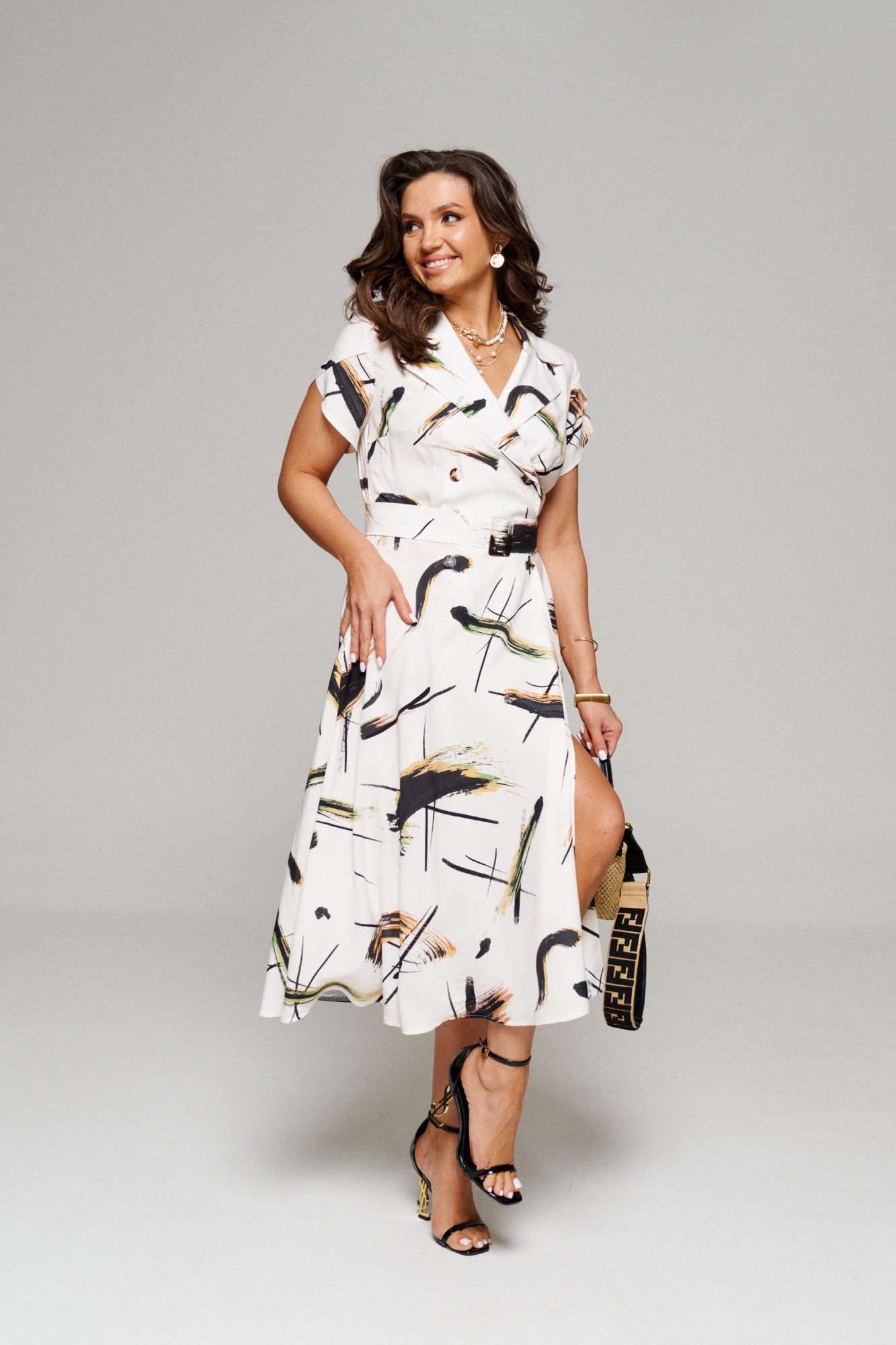 В комплекте к платью прилагается широкий пояс на пряжке.