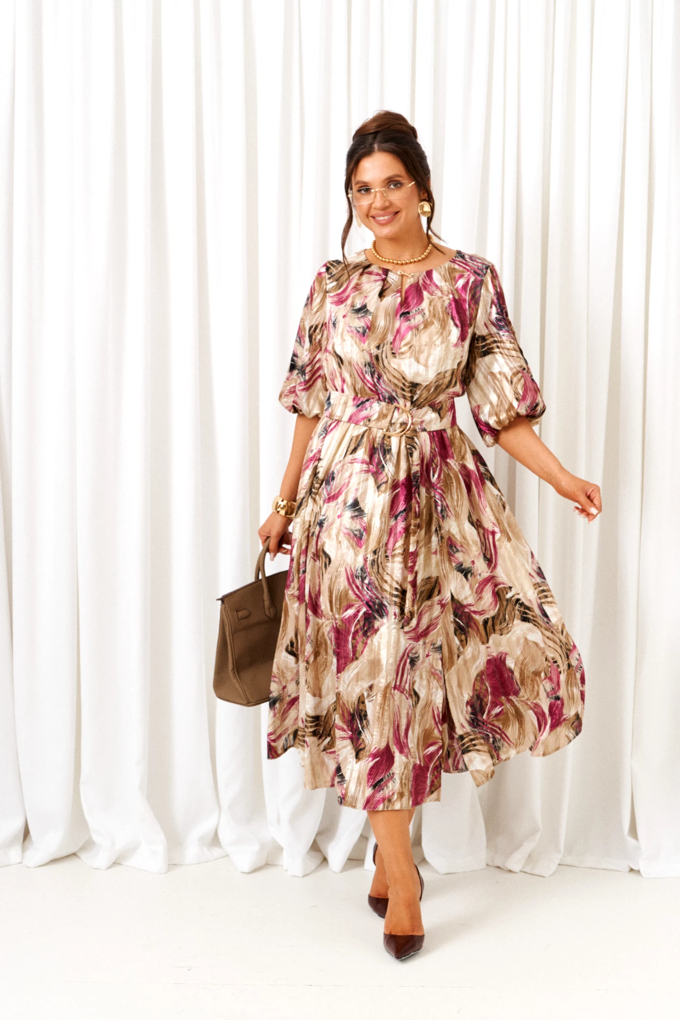 Платье Beautiful&Free 6412 бежево-бордовый