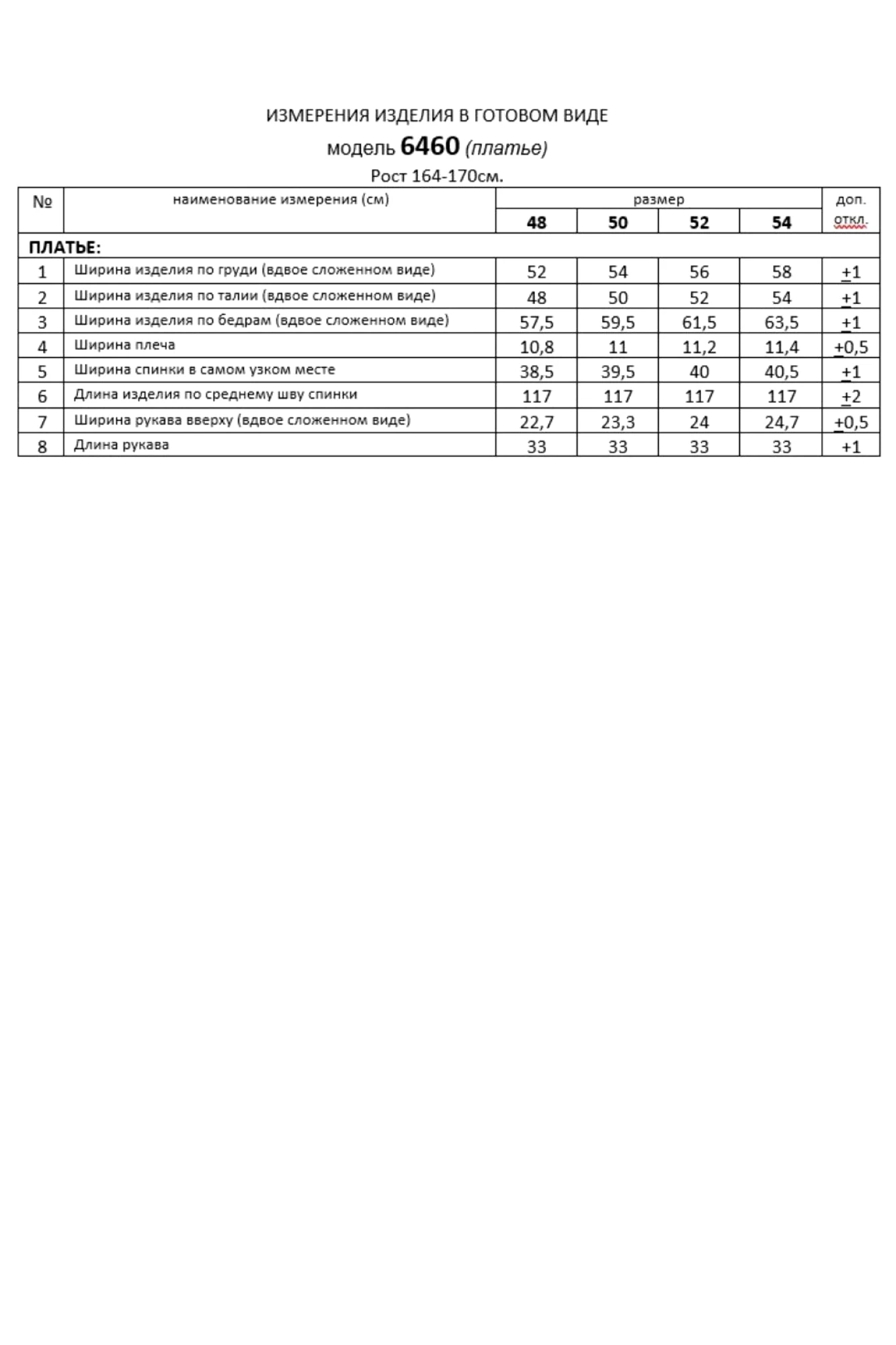 Таблица размеров