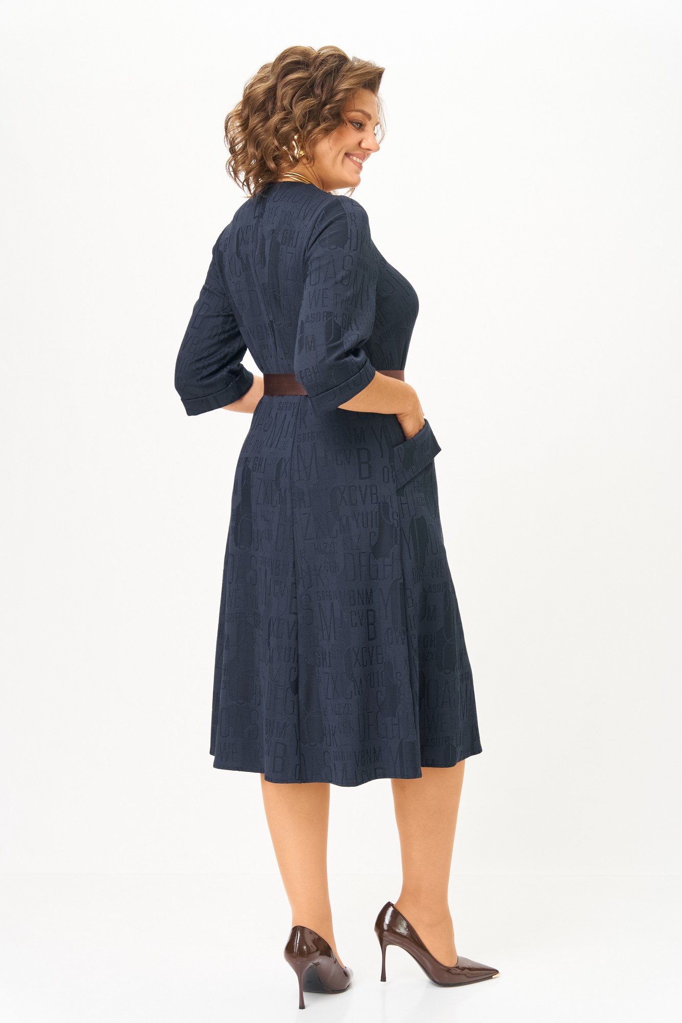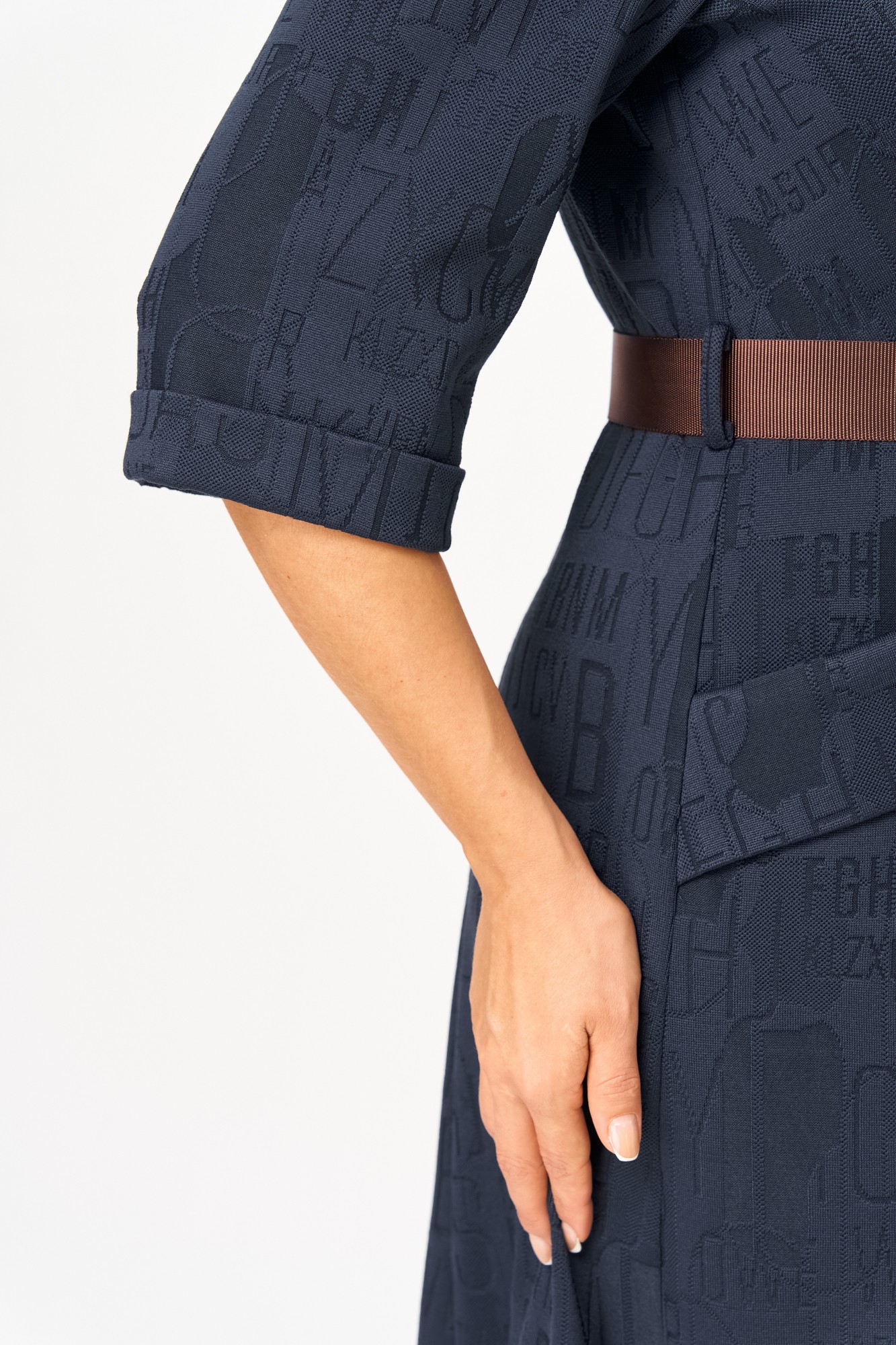 Стильное женское платье из комфортного трикотажа. Платье полуприлегающего силуэта, отрезное по линии талии, юбка шестиклинка, расширенная к низу. На уровне бедер карманы с отложенным клапаном. На лифе по переду центральный шов, горловина V-образная. Рукава втачные одношовные с отложной манжетой. В комплект входит ремень из тесьмы. Платье без подкладки.