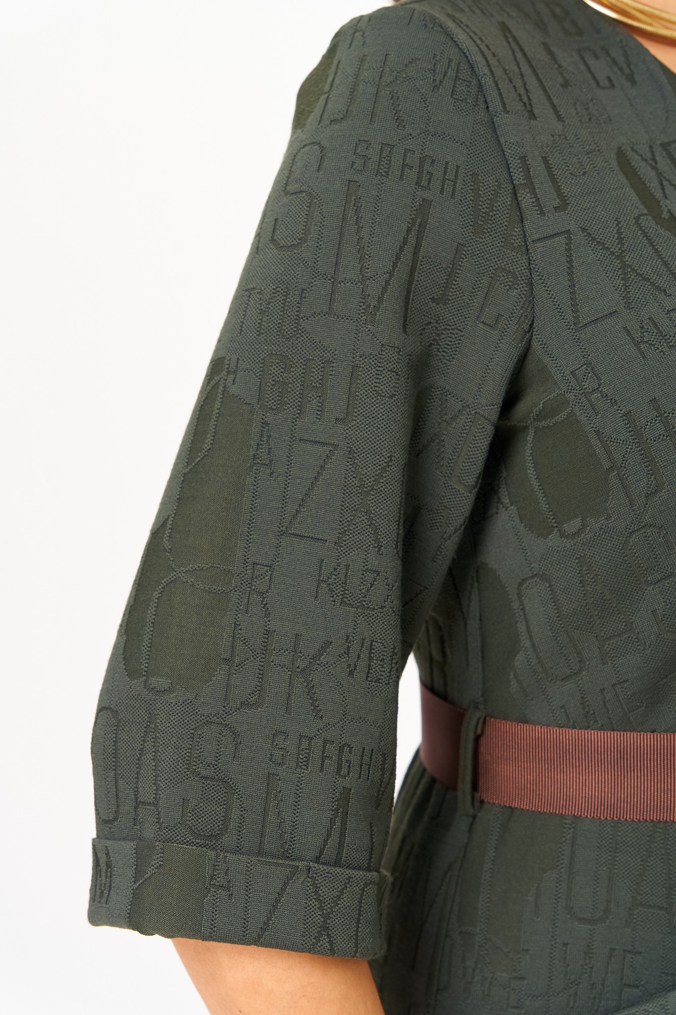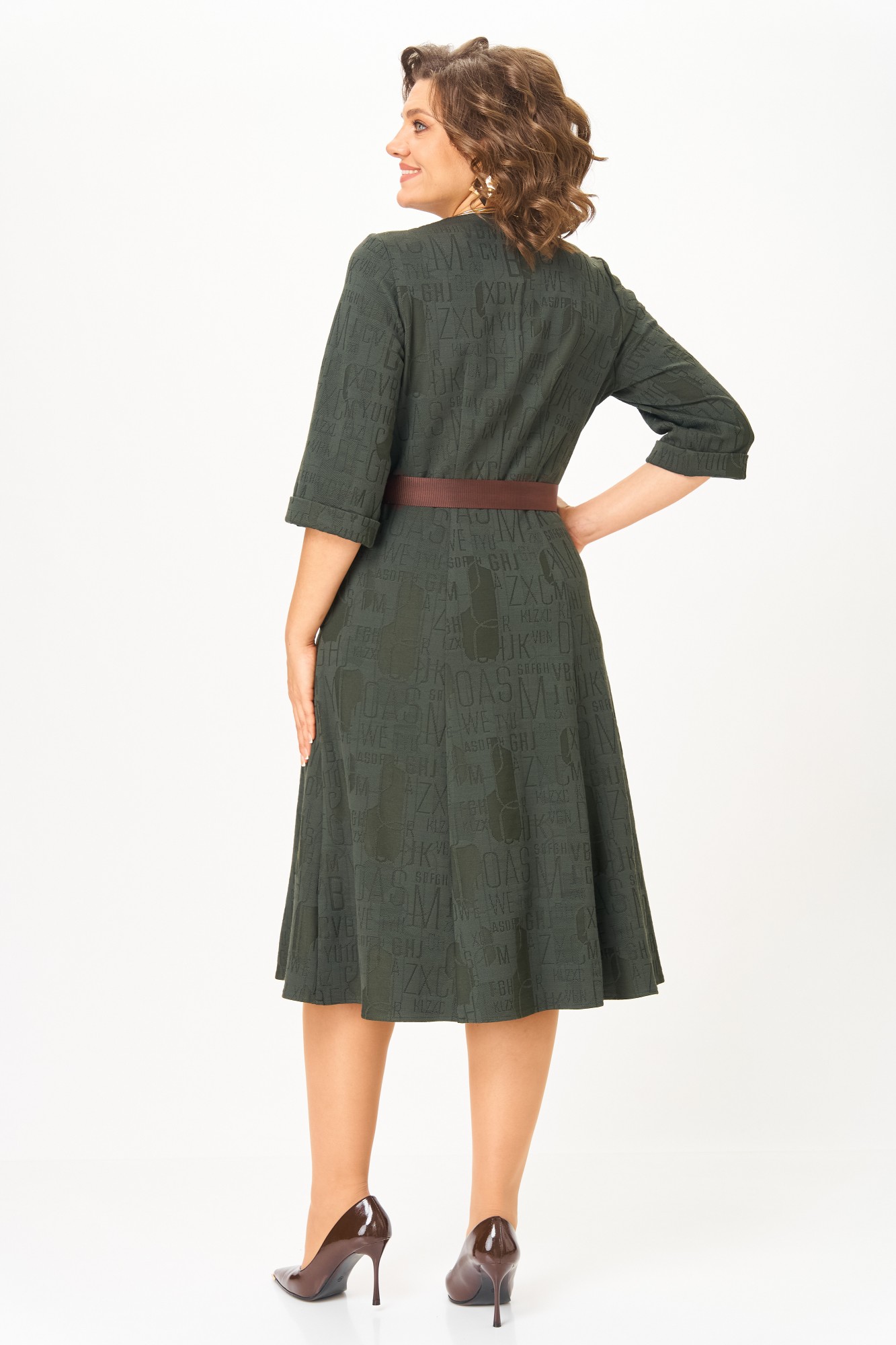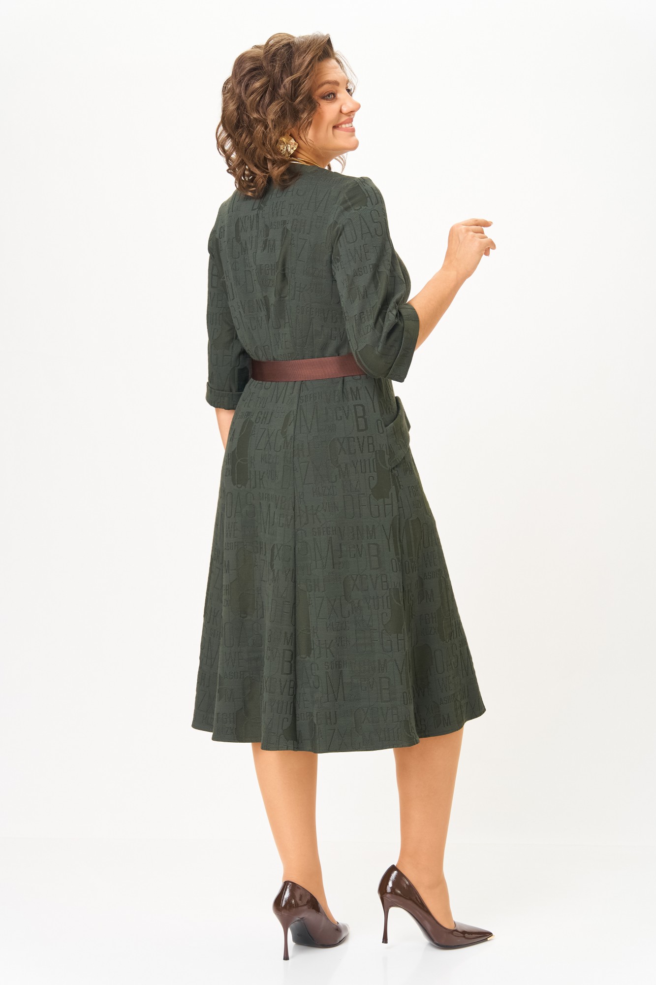 Стильное женское платье из комфортного трикотажа. Платье полуприлегающего силуэта, отрезное по линии талии, юбка шестиклинка, расширенная к низу. На уровне бедер карманы с отложенным клапаном. На лифе по переду центральный шов, горловина V-образная. Рукава втачные одношовные с отложной манжетой. В комплект входит ремень из тесьмы. Платье без подкладки.