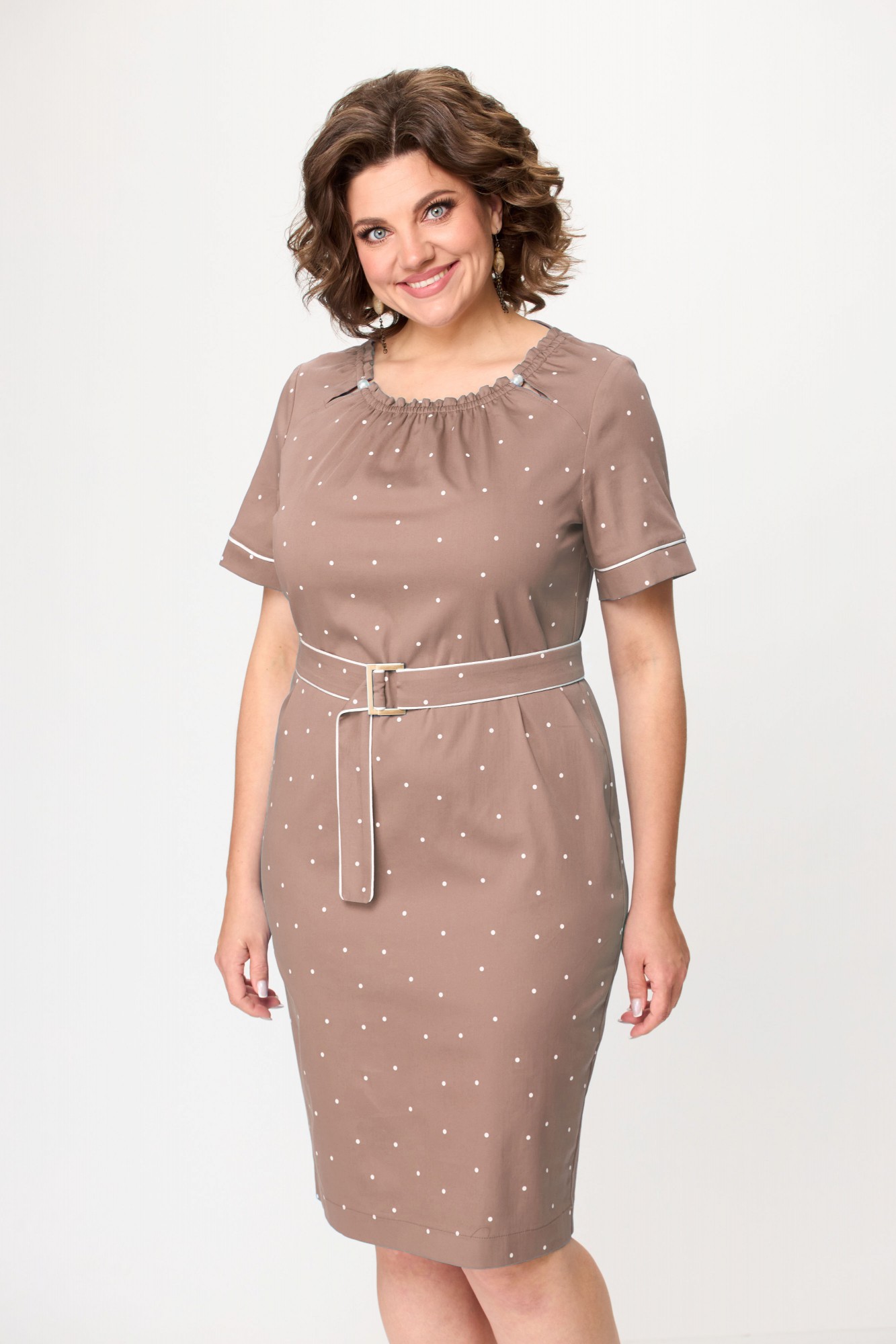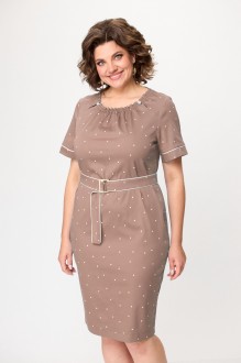 Элегантное женское платье выполнено из хлопка с содержанием эластана. Платье полуприлегающего силуэта. Горловина круглая, собрана на резинку с декоративными бусинам. Застежка в среднем шве спинки на тесьму молния. Рукава втачные с декоративным кантом понизу. В комплект ходит съемный пояс на пряжке и с декоративным кантом. Платье без подкладки.
