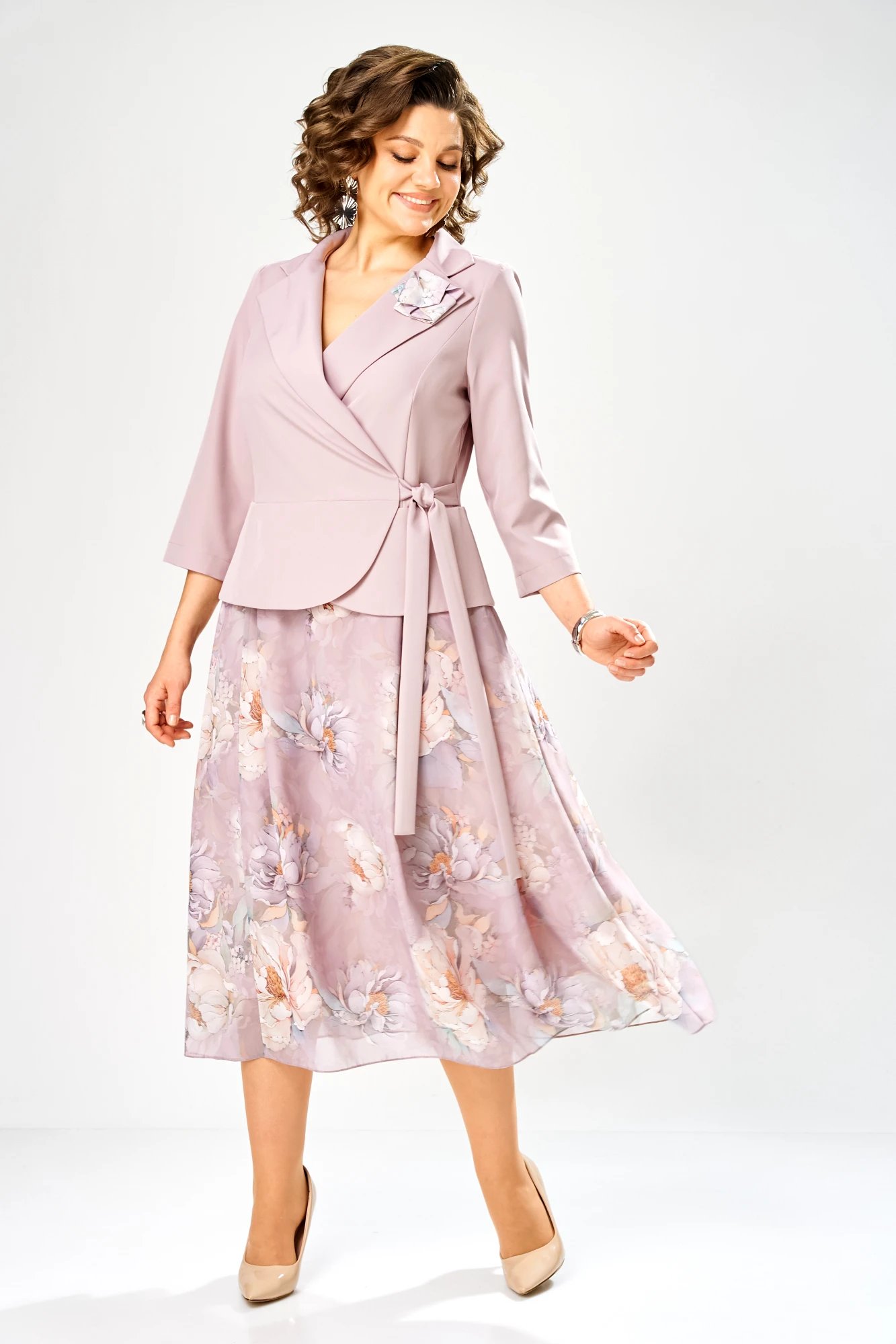 Платье Bonna Image 922 -1/15 пудровый, пионы