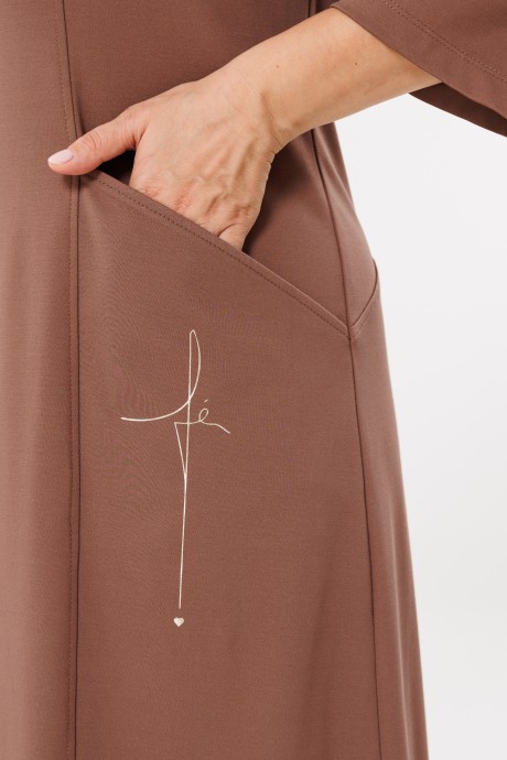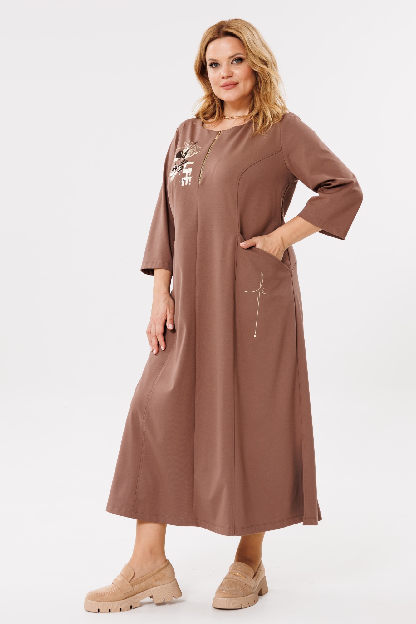 Платье из трикотажного полотна, комфортное, удобное. Полуприлегающего силуэта по груди к низу расширенное. Удлинённое, со средним швом и рельефами, по бокам расположены карманы, круглый вырез горловины, от горловины расположена металлическая молния. Изюминка платья дизайнерская печать . Спинка со средним швом и рельефами. Рукава втачные, длиной 7/8. В этой модели Вы будите выглядеть стильно, можно на работу, выхода на мероприятия, встречи с друзьями.