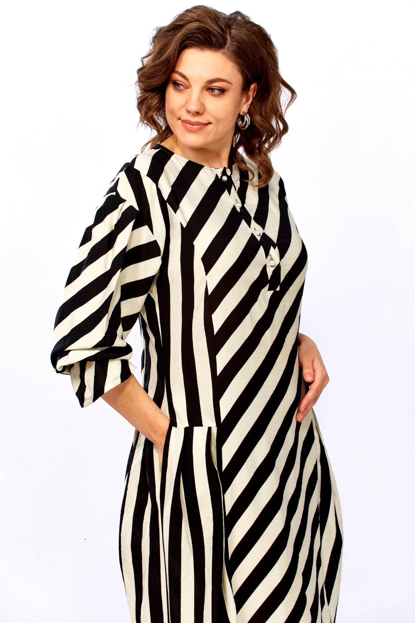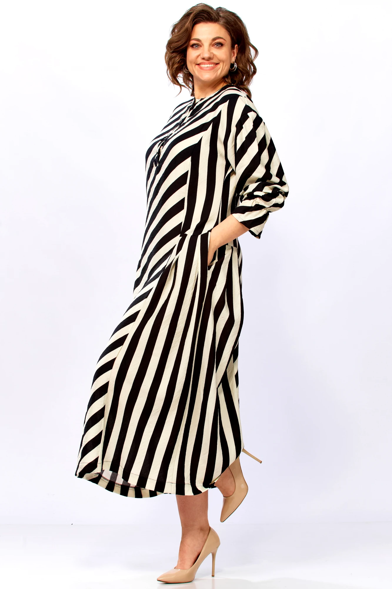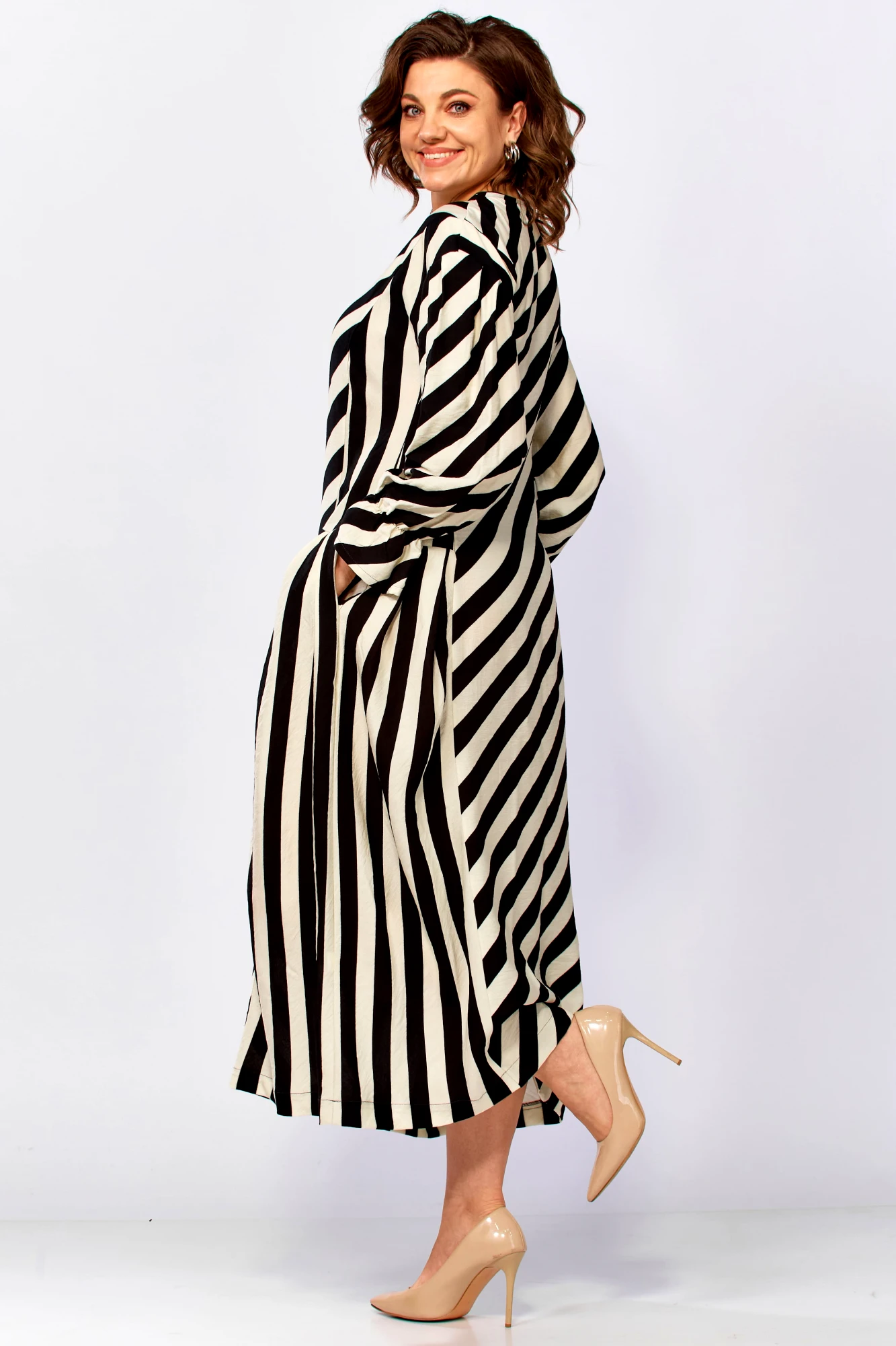 3. Для дам с формами: крой и направление полос мастерски моделируют гармоничный силуэт.