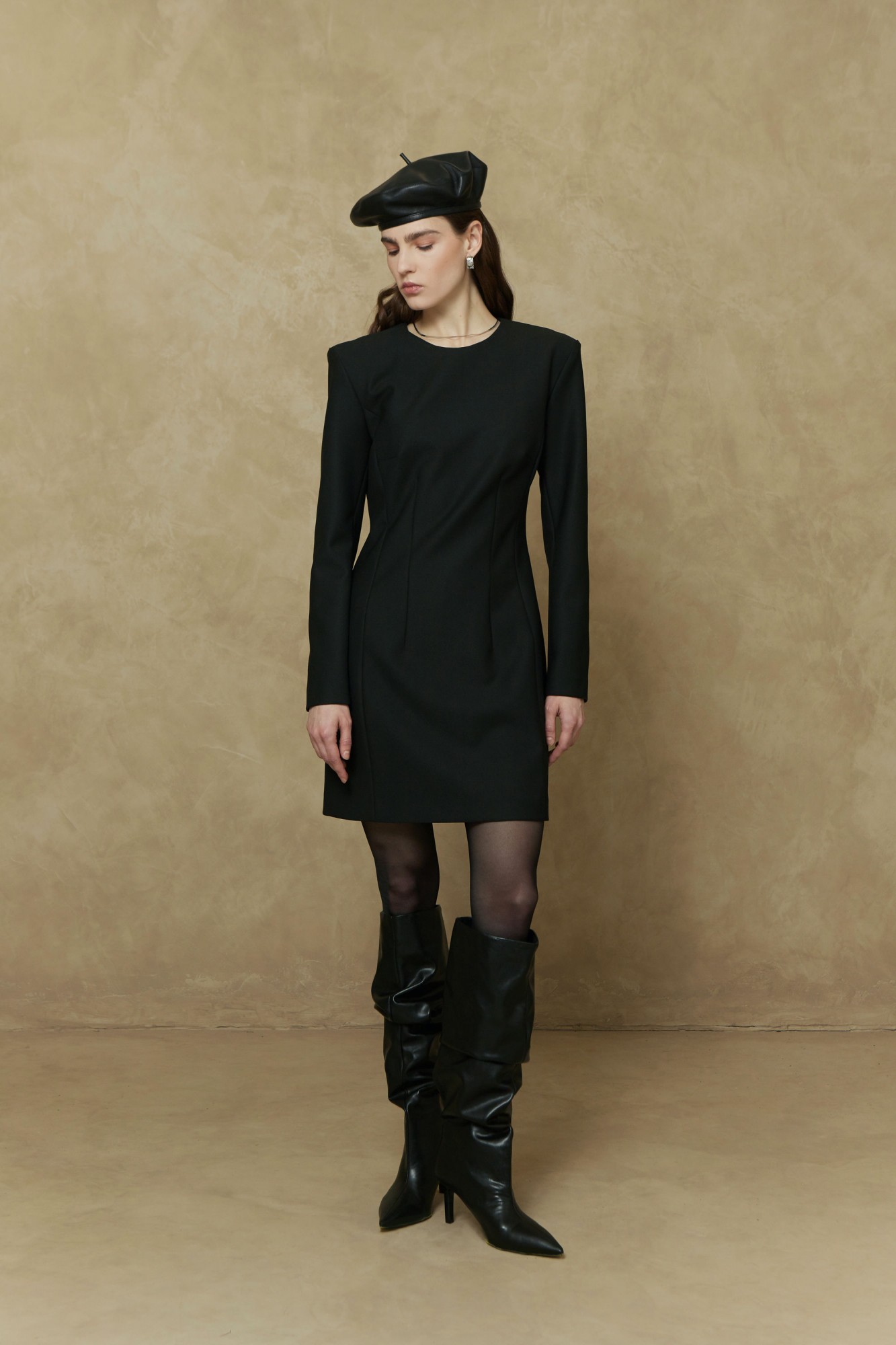 Платье женское полуприлегающего силуэта, длиной выше колен. Застежка на потайную молнию по спинке. Рукав длинный.