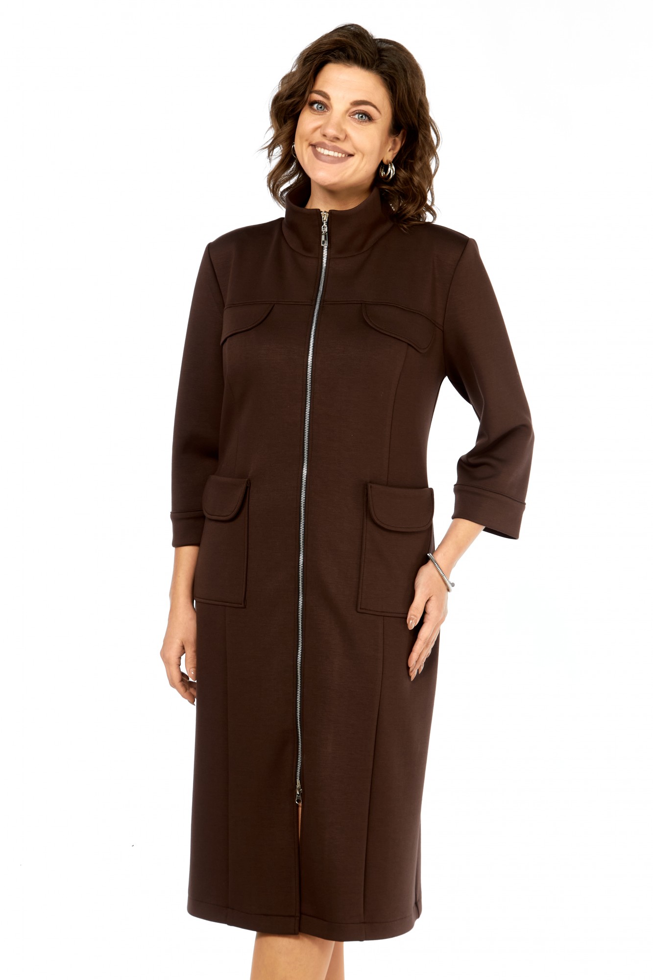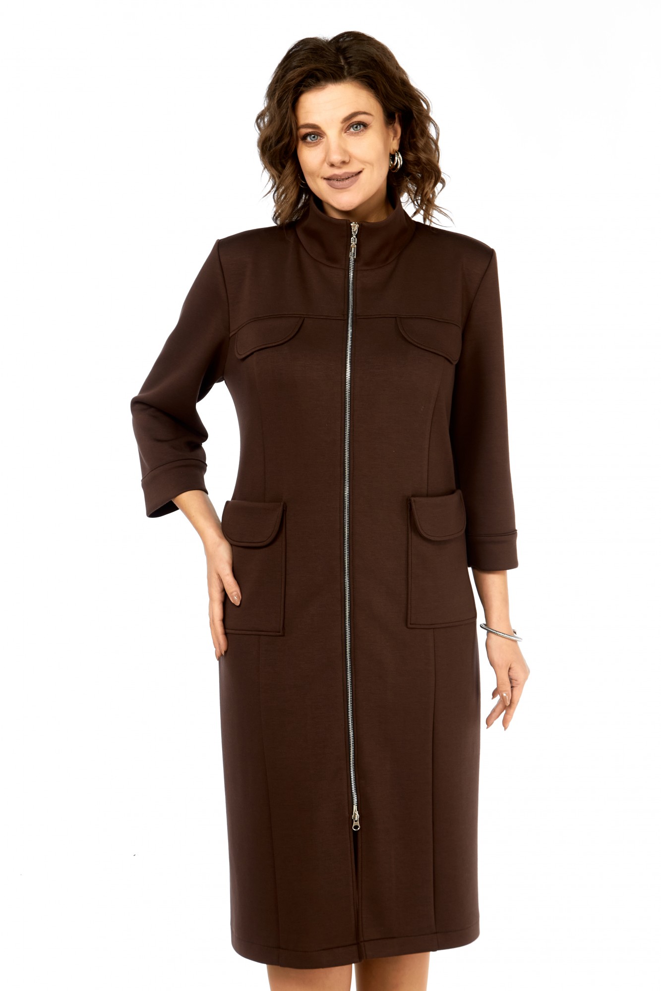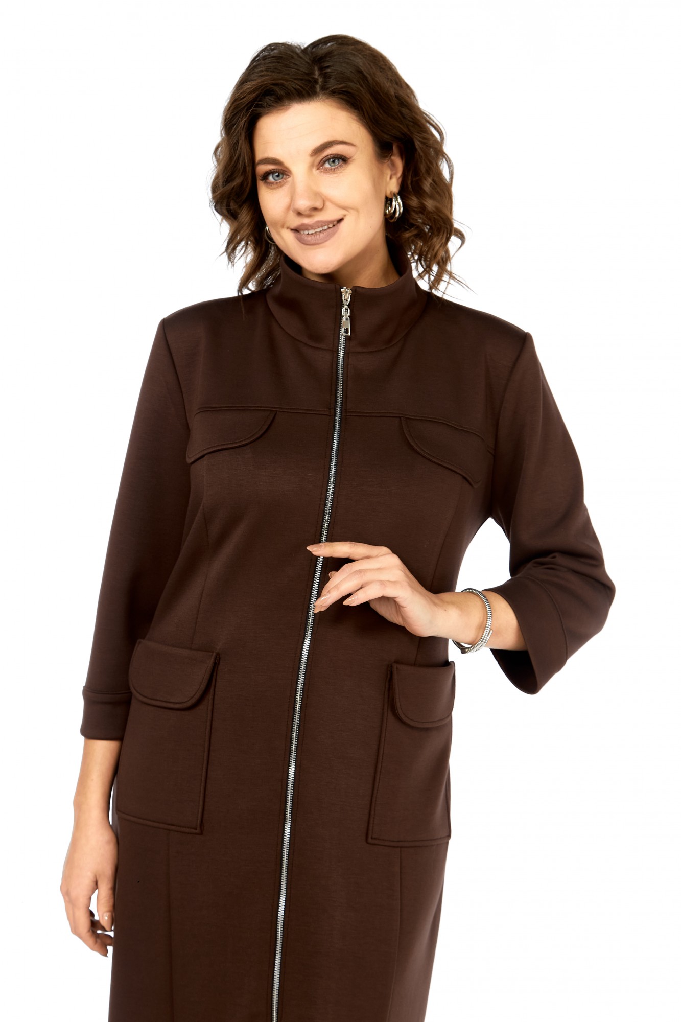 Женственное платье, которое считается универсальным и уместным как для офиса, так и для встречи с друзьями. Модель полуприлегающего силуэта. По переду отрезная кокетка в области груди оформлены клапаны, ниже накладные функциональные карманы с клапаном. По переду расположена декоративная функциональная застежка-молния, которая служит и как элемент дизайна. Горловина на отрезной стойке. Классический втачной рукав, низ обработан притачной манжетой. Спинка на кокетке со средним швом и выточками.
