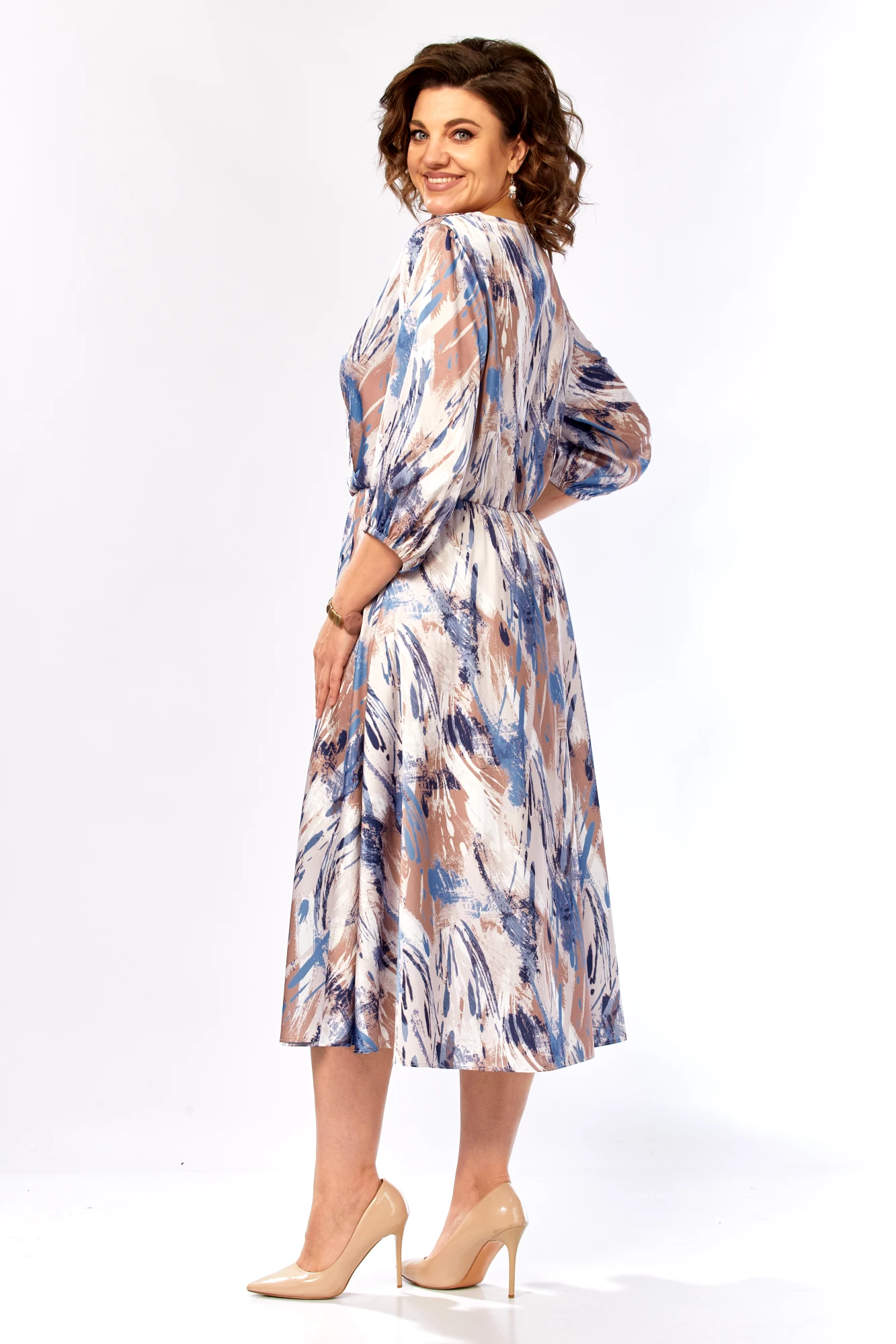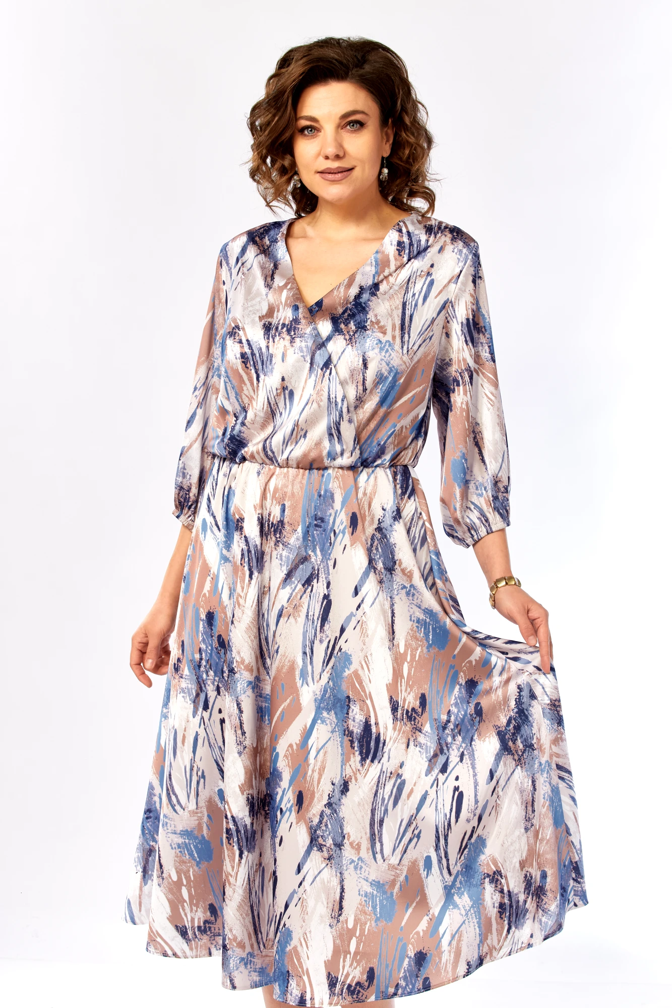 Платье Элль-Стиль 2462 бежево-голубой принт