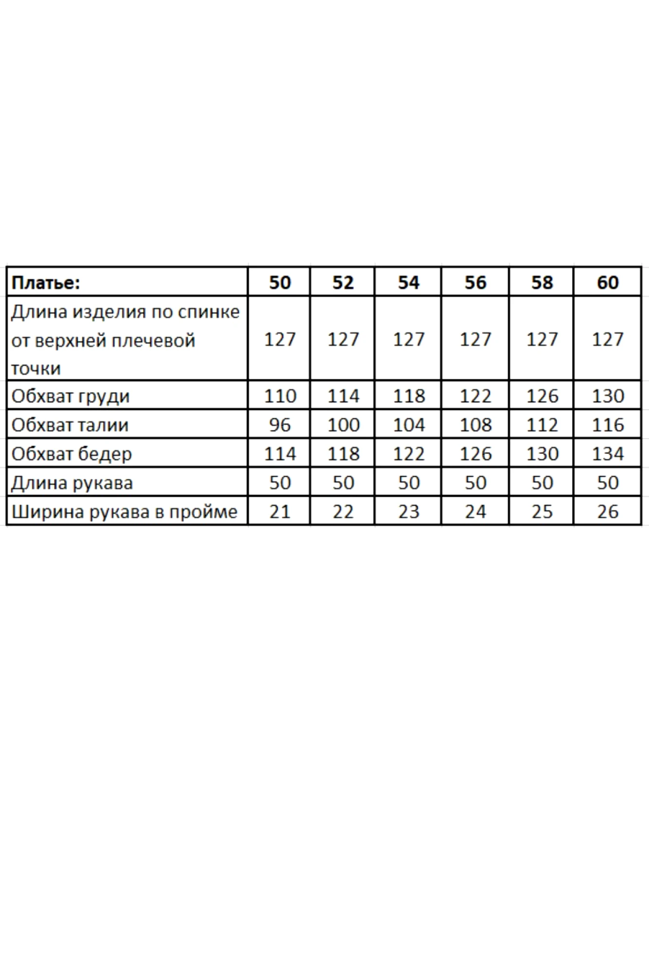 Таблица измерений