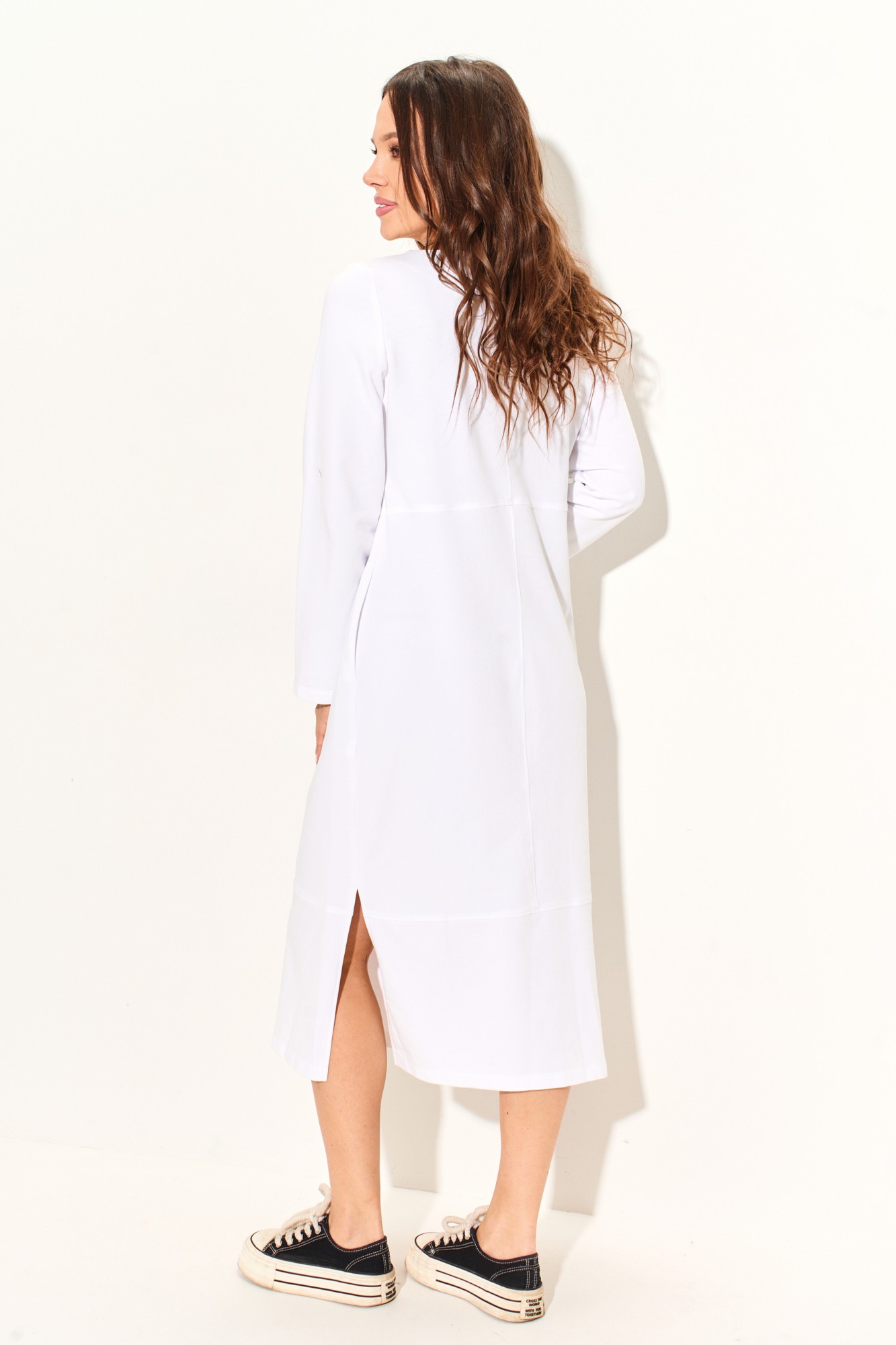 Стильное женское платье полуприлегающего силуэта со втачными рукавами выполнено из мягкого трикотажа футер 2-х нитка класс "пенье". По переду отделочные строчки, в боковом шве разрез. Изделие полностью соответствует заявленному размеру. Пожалуйста, пользуйтесь таблицей обмеров готового изделия. Уход за натуральными тканями: рекомендована машинная стирка при температуре 30 градусов; - сушить изделие на горизонтальной поверхности.