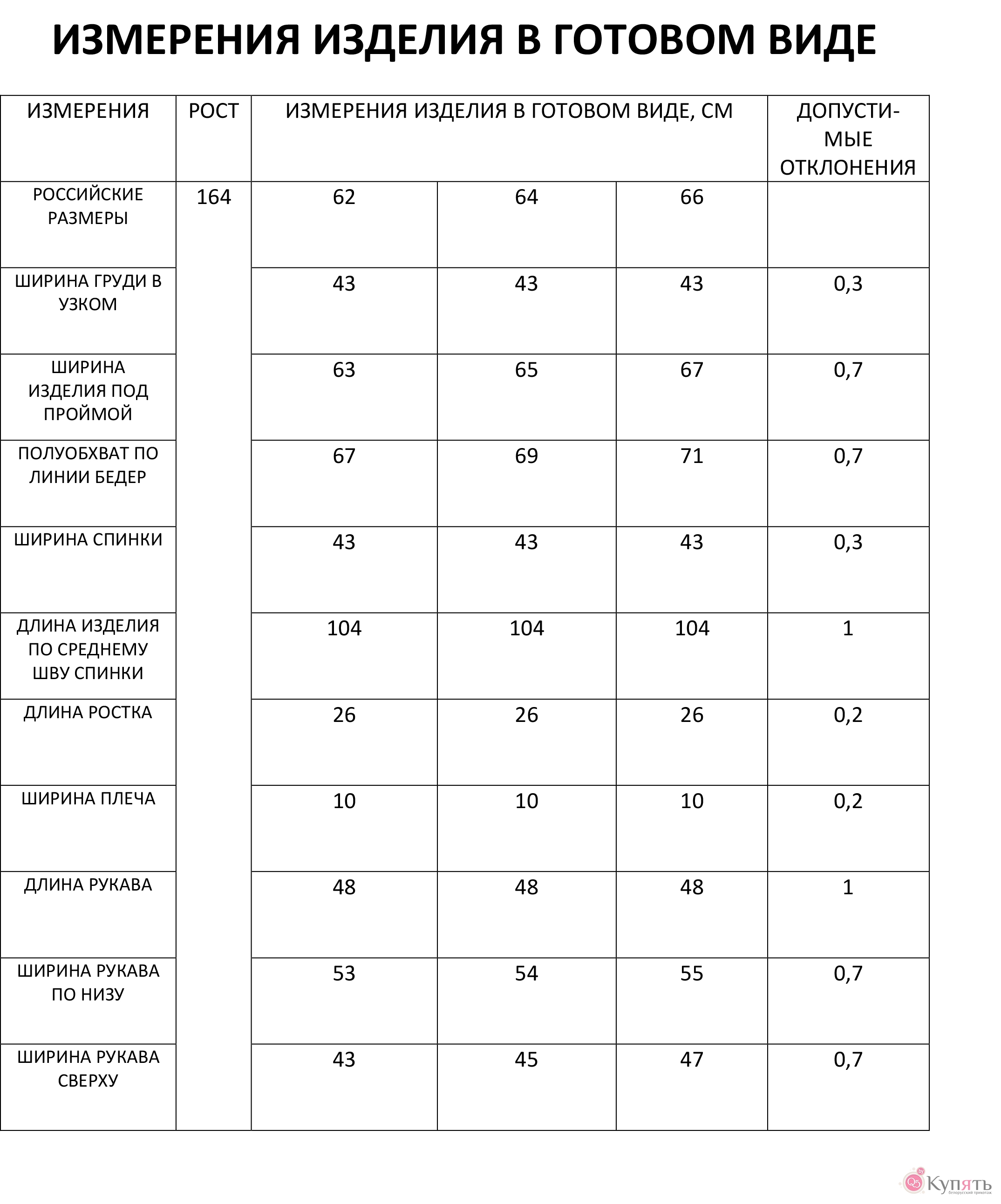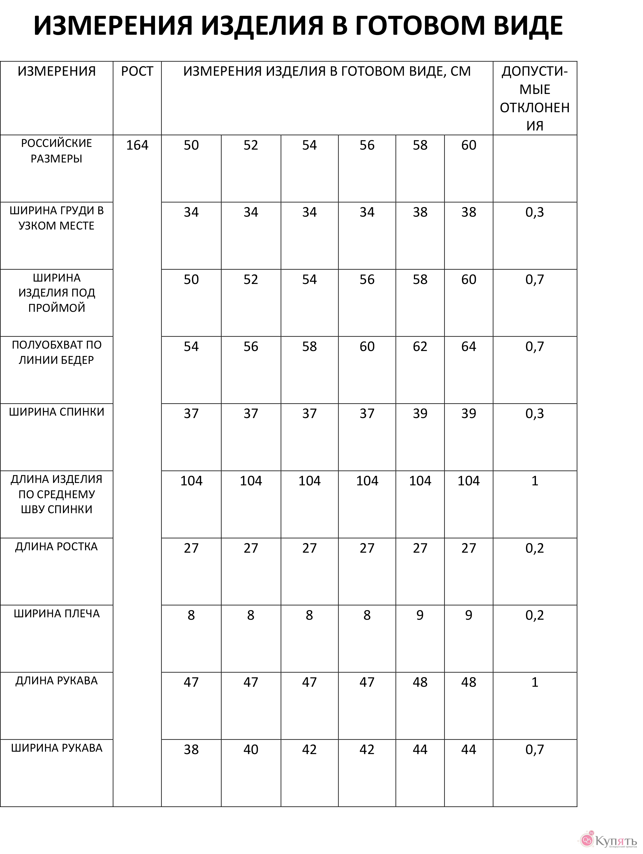 Таблица размеров