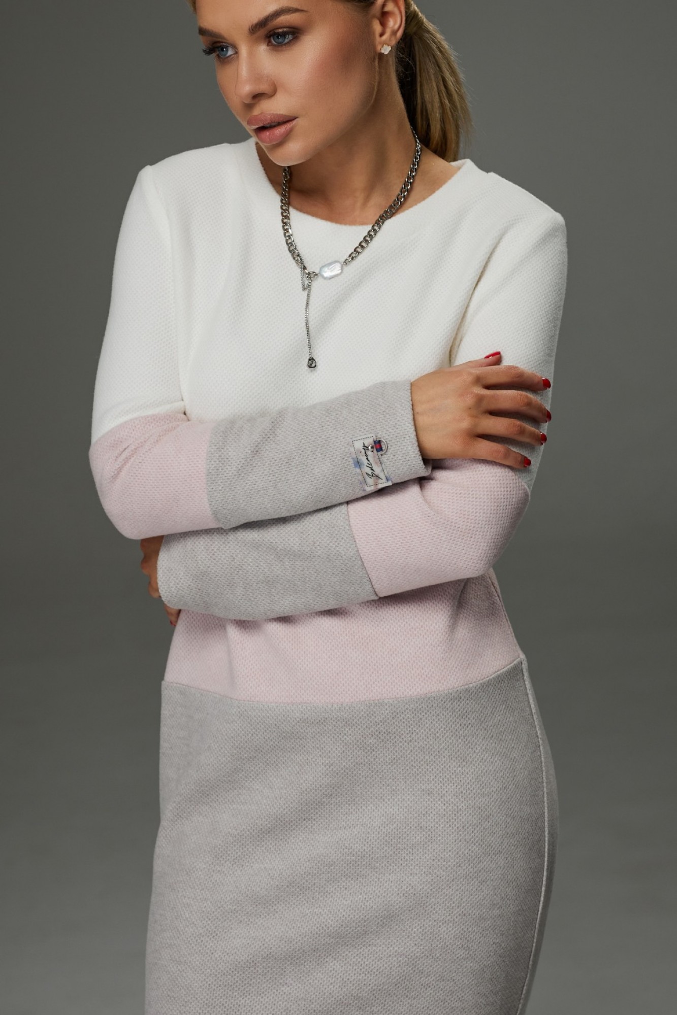 Платье Galean Style 915 /1 белый, розовый, серый