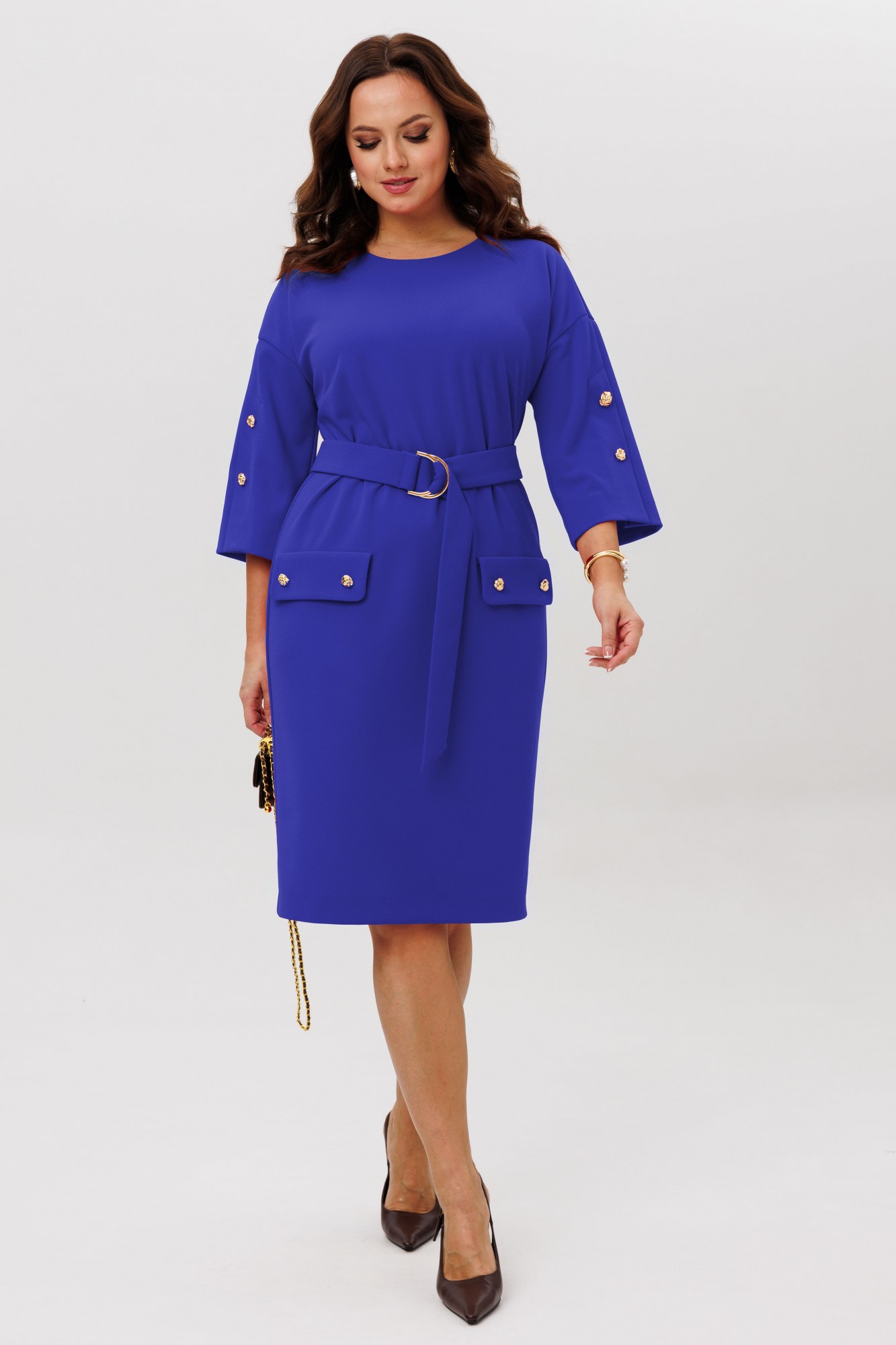Нарядное платье из трикотажного крепа с мелким блеском станет прекрасным выбором для вечерних мероприятий, корпоративных встреч и праздничных торжеств. Особенностью этого стильного платья является его прямая модель ,которая подчеркивает женственность и элегантность. Платье подходит для полных женщин. Платье прямого силуэта с нагрудными вытачками. Рукав спущенный с декоративной шпицей и пуговицами. Декором платья являются клапаны и пуговицы. Пояс эффектно подчеркивает талию.