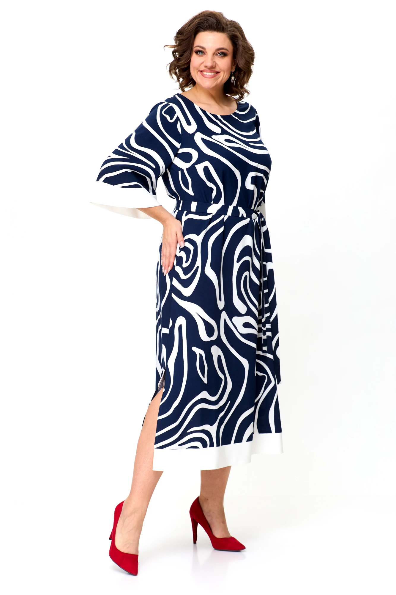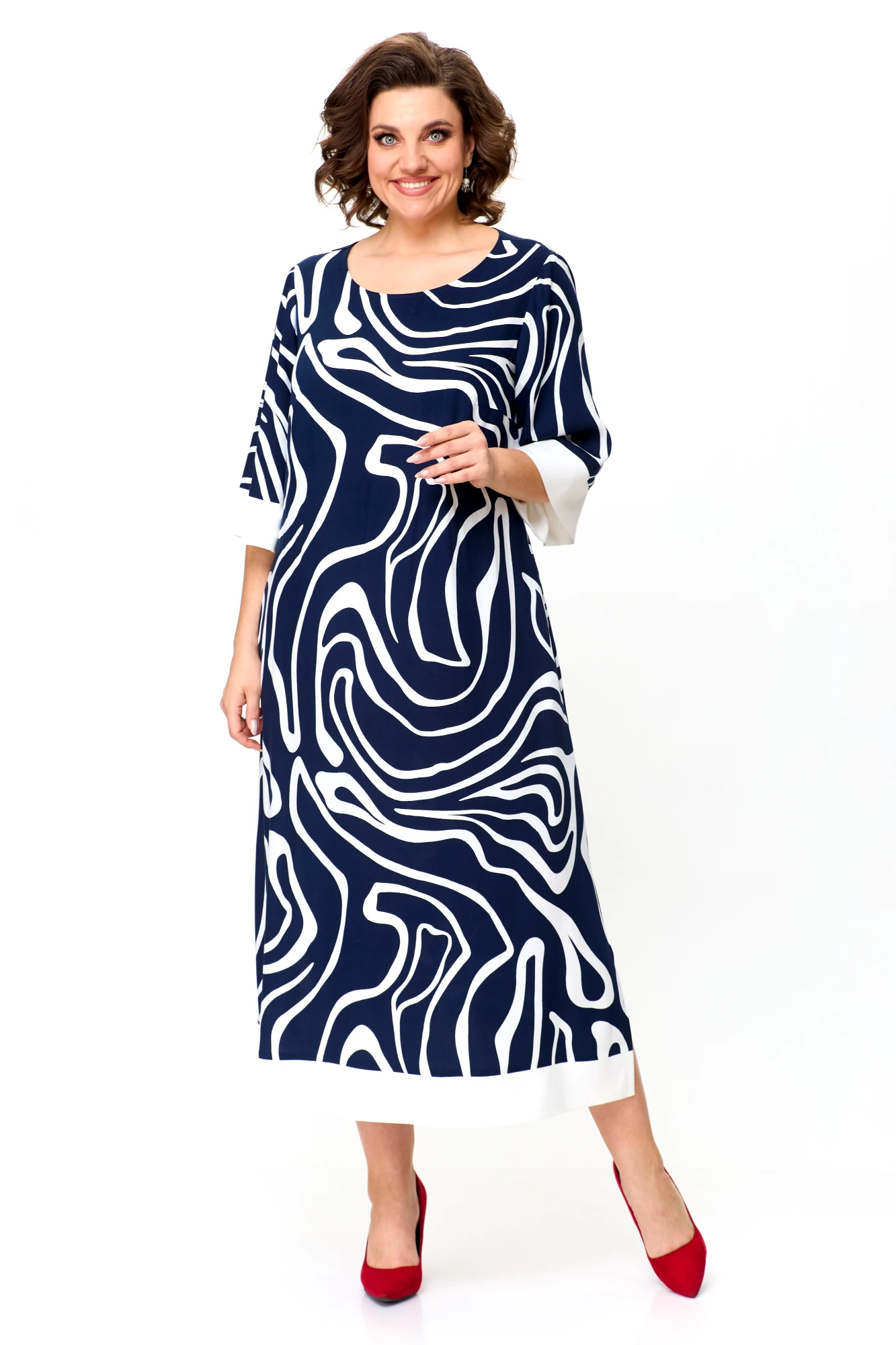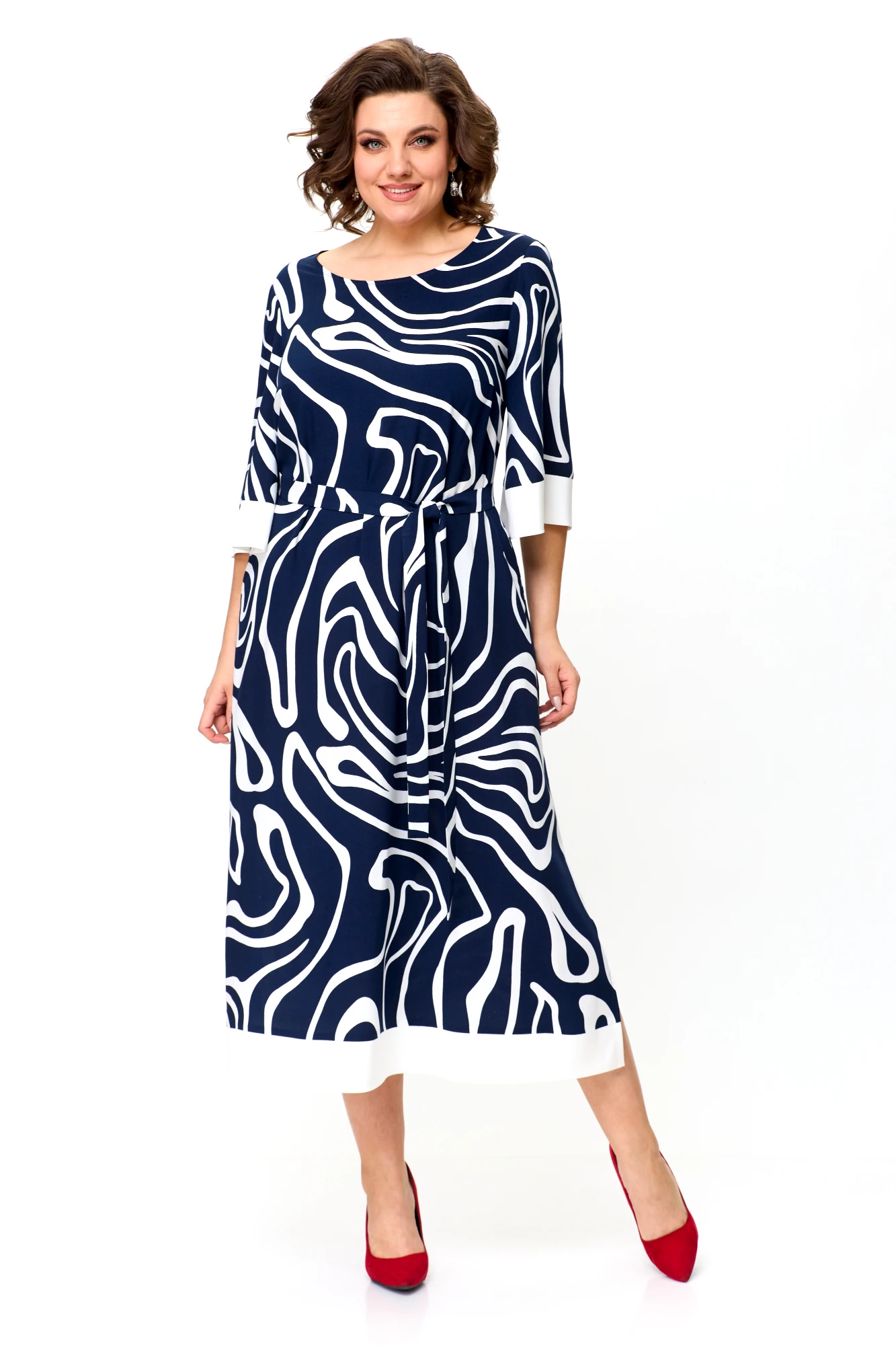 Платье КаринаДелюкс М-1245 синее+белое