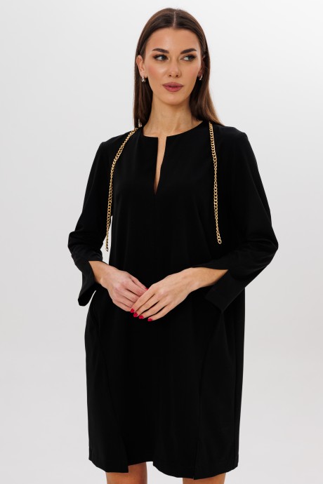 Это платье прямого силуэта — воплощение современного стиля и элегантности. Разрезы по рукавам и рельефам низа добавляют изысканности и динамики, создавая уникальный и привлекательный образ. Карманы, расположенные в рельефах, не только практичны, но и подчёркивают внимание к деталям. Разрез по середине переда придаёт платью смелый и оригинальный акцент. Горловина, отделанная декоративной металлической цепочкой золотого цвета, добавляет нотку роскоши и утончённости, завершая образ с изысканным штрихом. Это платье станет идеальным выбором для особых случаев, подчёркивая вашу индивидуальность и безупречный вкус.