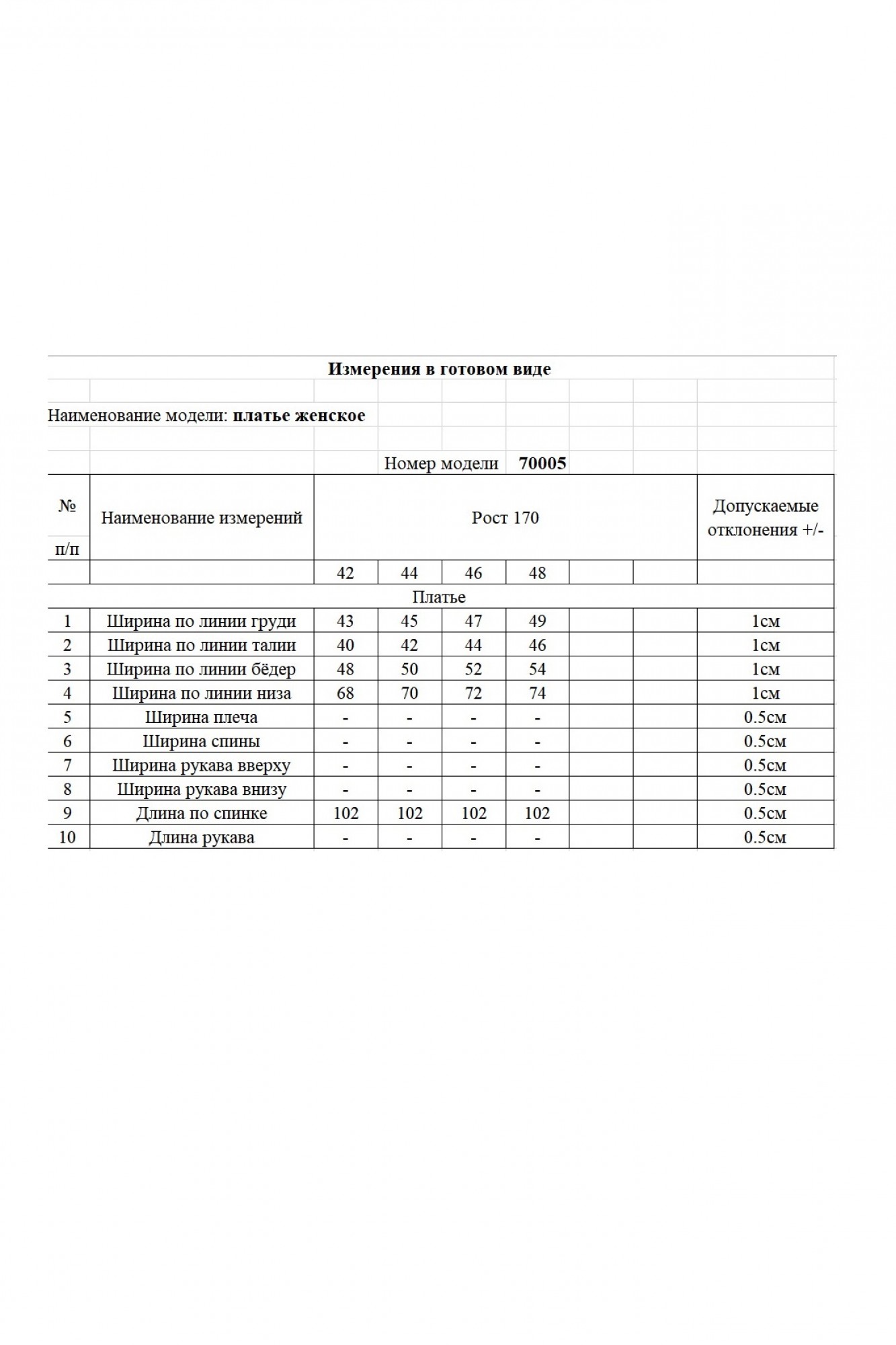 Таблица размеров