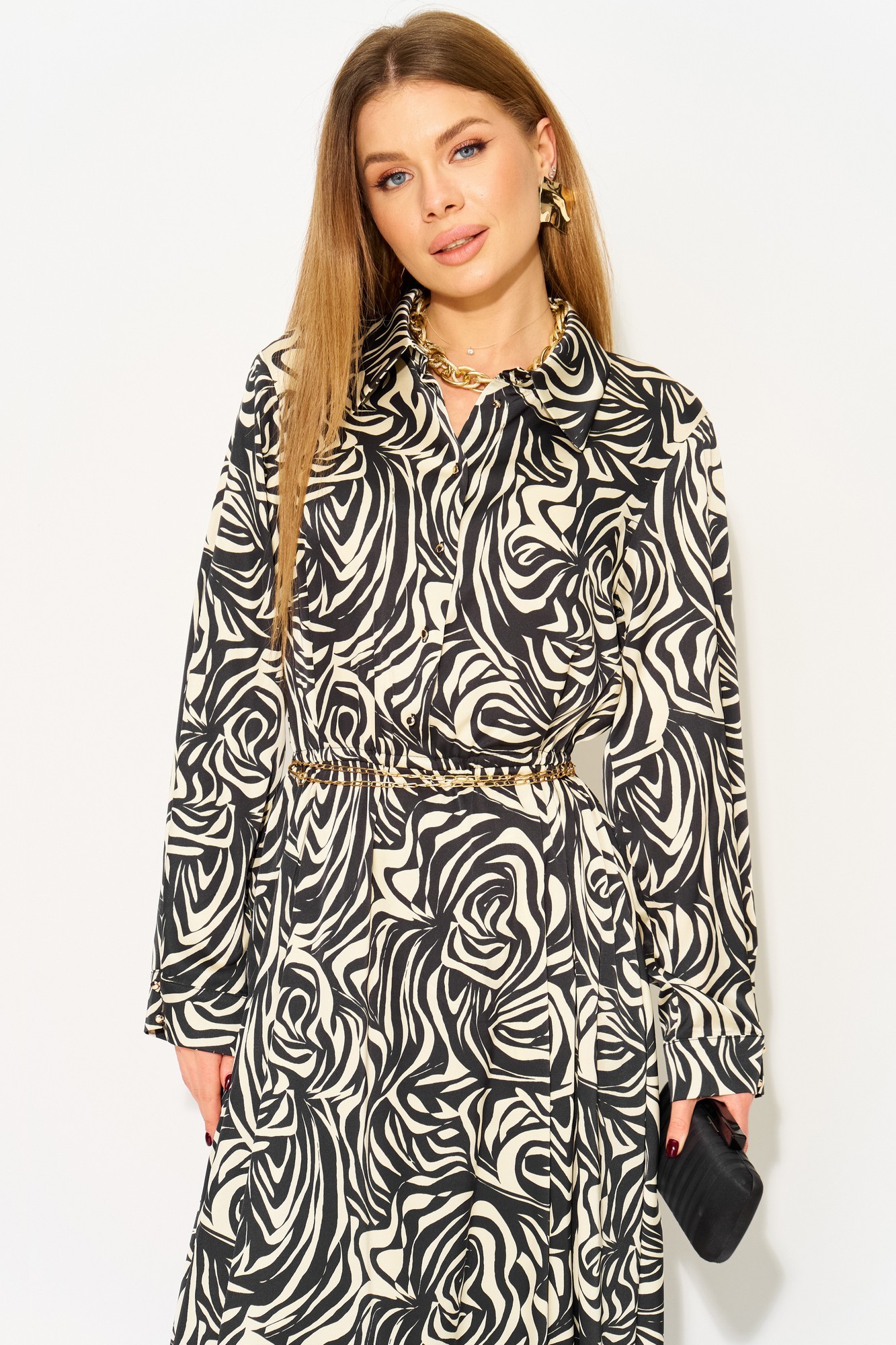 Нарядное атласное платье от LAIKONY полуприлегающего силуэта длиной в пол. Воротник отложной, застежка центральная на петли и пуговицы и одну петлю и пуговицу на стойке воротника. Платье с подрезом на уровне линии талии, в шов соединения лифа и юбки вставлена эластичная тесьма. Юбка платья на трикотажной подкладке. Рукава втачные одношовные, с притачными манжетами, с застежкой на 2 навесные петли и пуговицы. Ткань не тянется. В комплект входит съемный пояс. Шикарное платье-миди будет актуально как на торжественном мероприятии, так и в повседневном использовании!