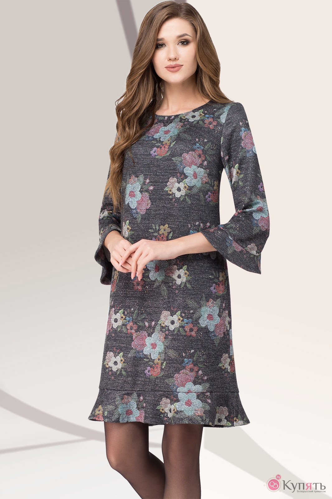 Платье LeNata 11960 серый в цветы с ID товара 193986