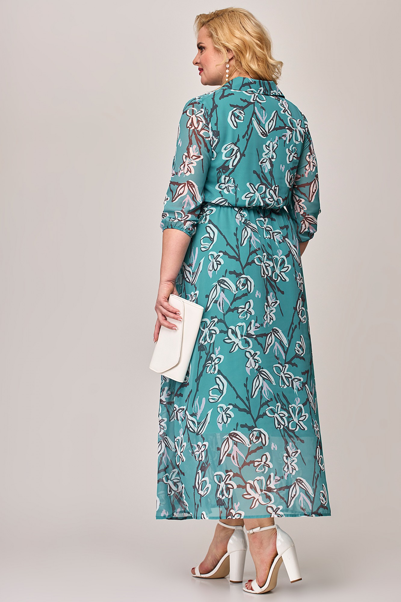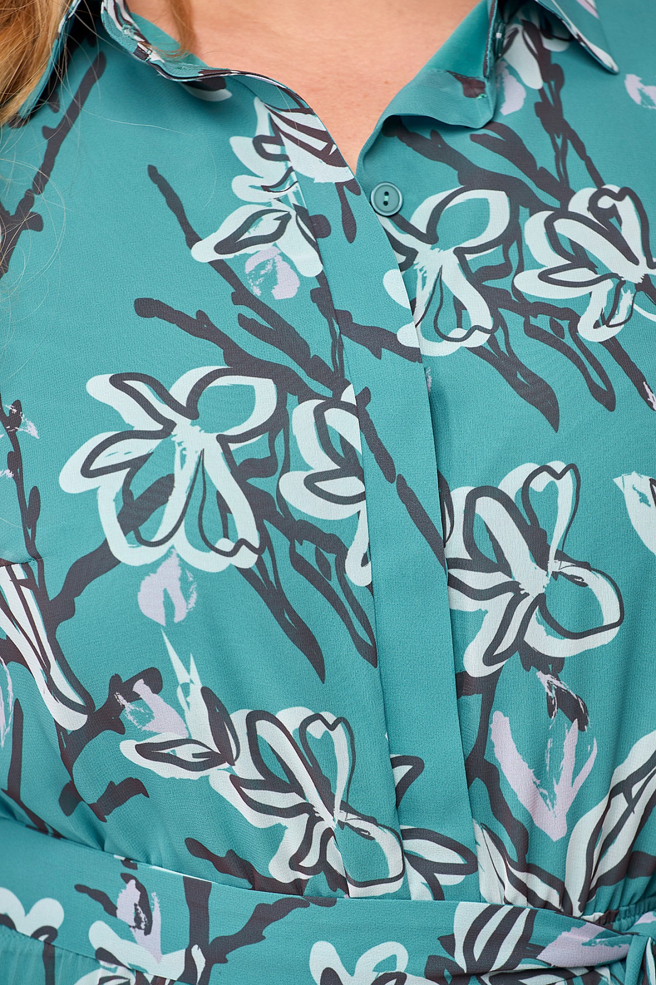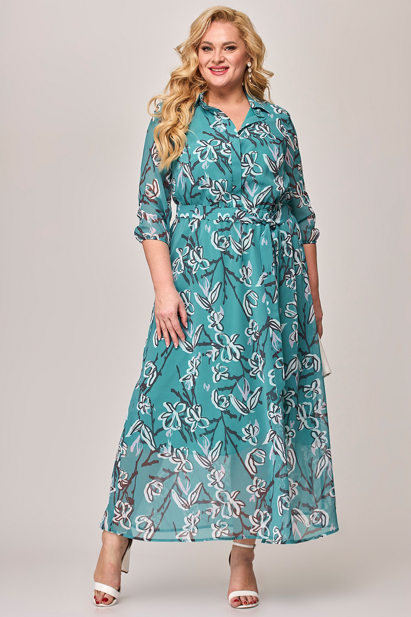 Шифоновое женское платье - незаменимая вещь в гардеробе современной модницы. В наличии платья больших размеров для женщин плюс сайз. Расширенное к низу платье прямого силуэта на резинке по линии талии прекрасно скрывает нюансы фигуры и подчеркивает достоинства. На полочке платья обработана потайная застёжка. Горловина с воротником на стойке. На платье по рельефу переда юбки обработан разрез. Рукав длиной чуть ниже локтя, низ рукава на резинке. В комплект к платью входит съёмный пояс. Платье шикарно смотрится как с туфлями на каблуке, так и с кедами. Меняйте свой образ в зависимости от настроения и носите его как классическое, офисное, или как вечернее платье!