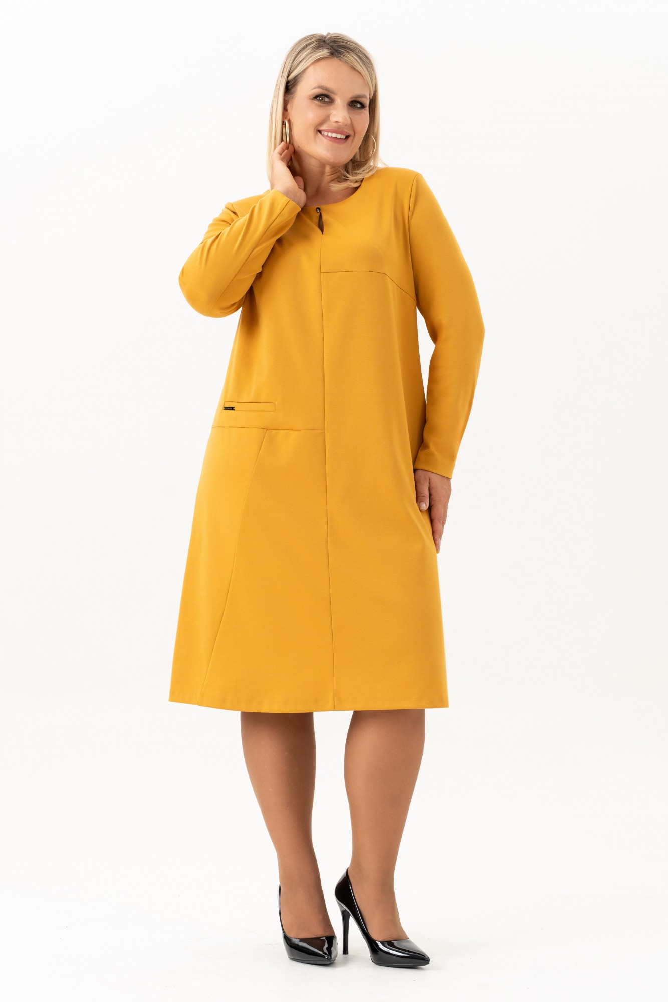 Удобное, стильное, красивое платье из трикотажного полотна прямого силуэта, слегка расширенного к низу. Платье отлично сядет на любую фигуру. Полочка асимметричного кроя. С одной стороны обработан карман-имитация с втачной листочкой, с другой - карман в боковом шве. Капелька по среднему шву полочки. На спинке, в среднем шве, обработана застежка (потайная молния). Рукав длинный. Простое в уходе, универсальное, базовое платье больших размеров неоднократно порадует вас! Платье легко комбинировать с другими предметами гардероба, добавляя акценты и создавая стильные многослойные образы. Модель очень хорошо стройнит и скрывает неровности фигуры. Красота в простоте, так можно сказать, про это платье, в котором Вы будете себя уверенно чувствовать в любой ситуации, можно носить и в офис, и на прогулку, и в ресторан.