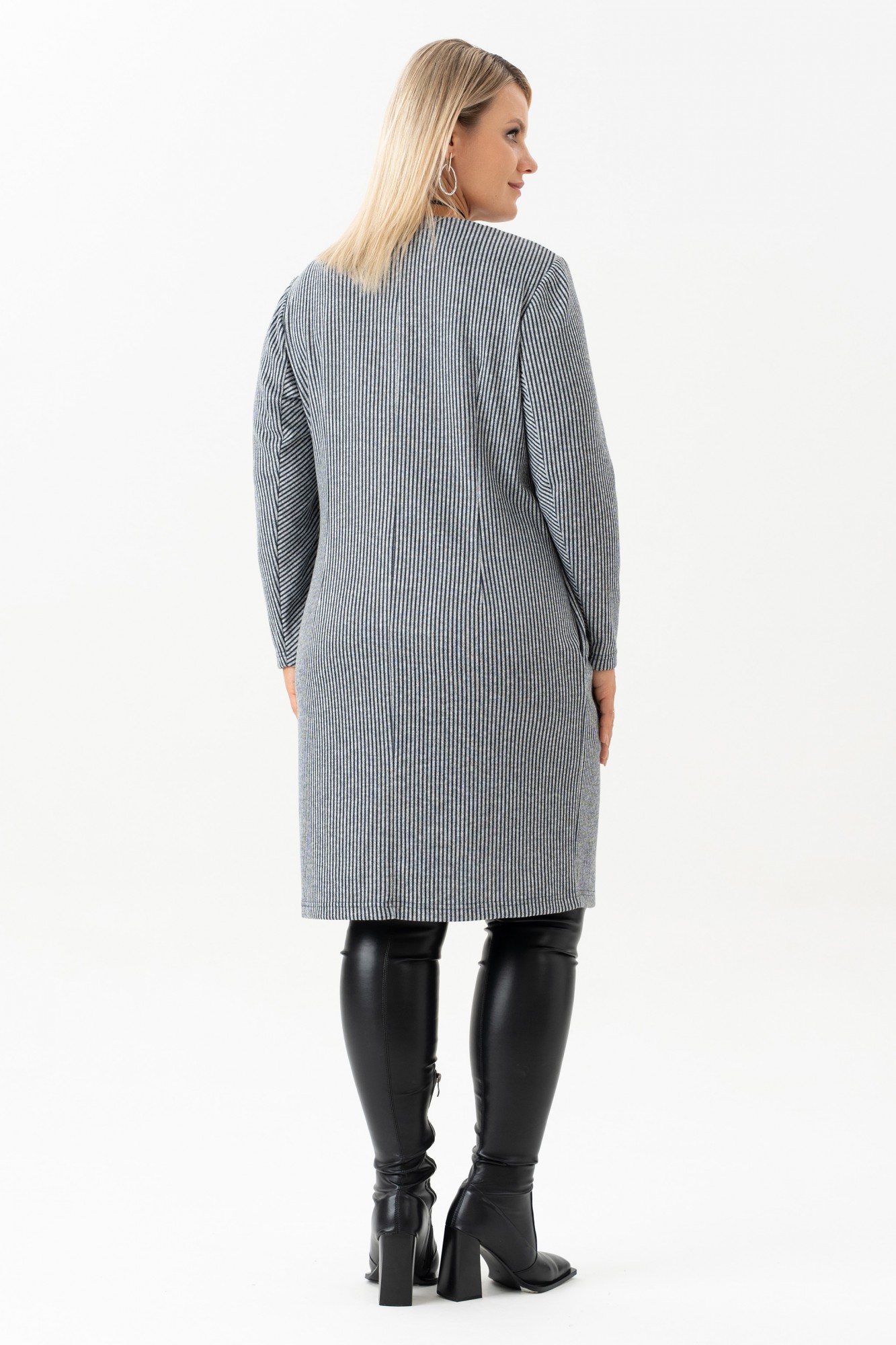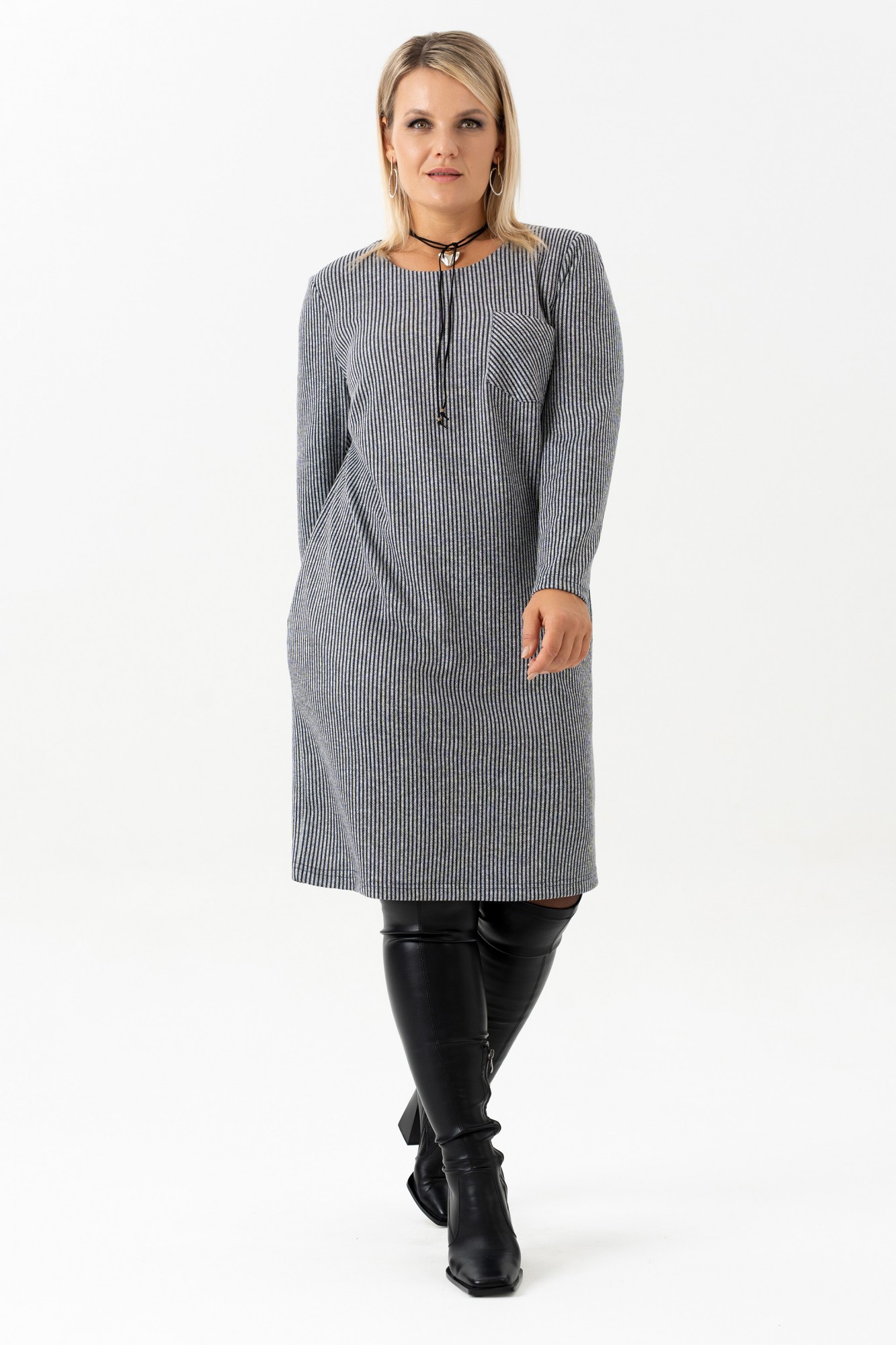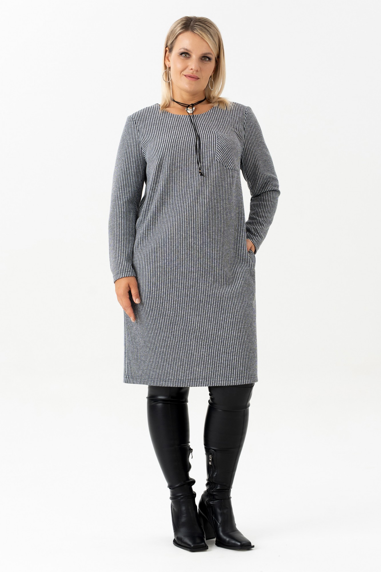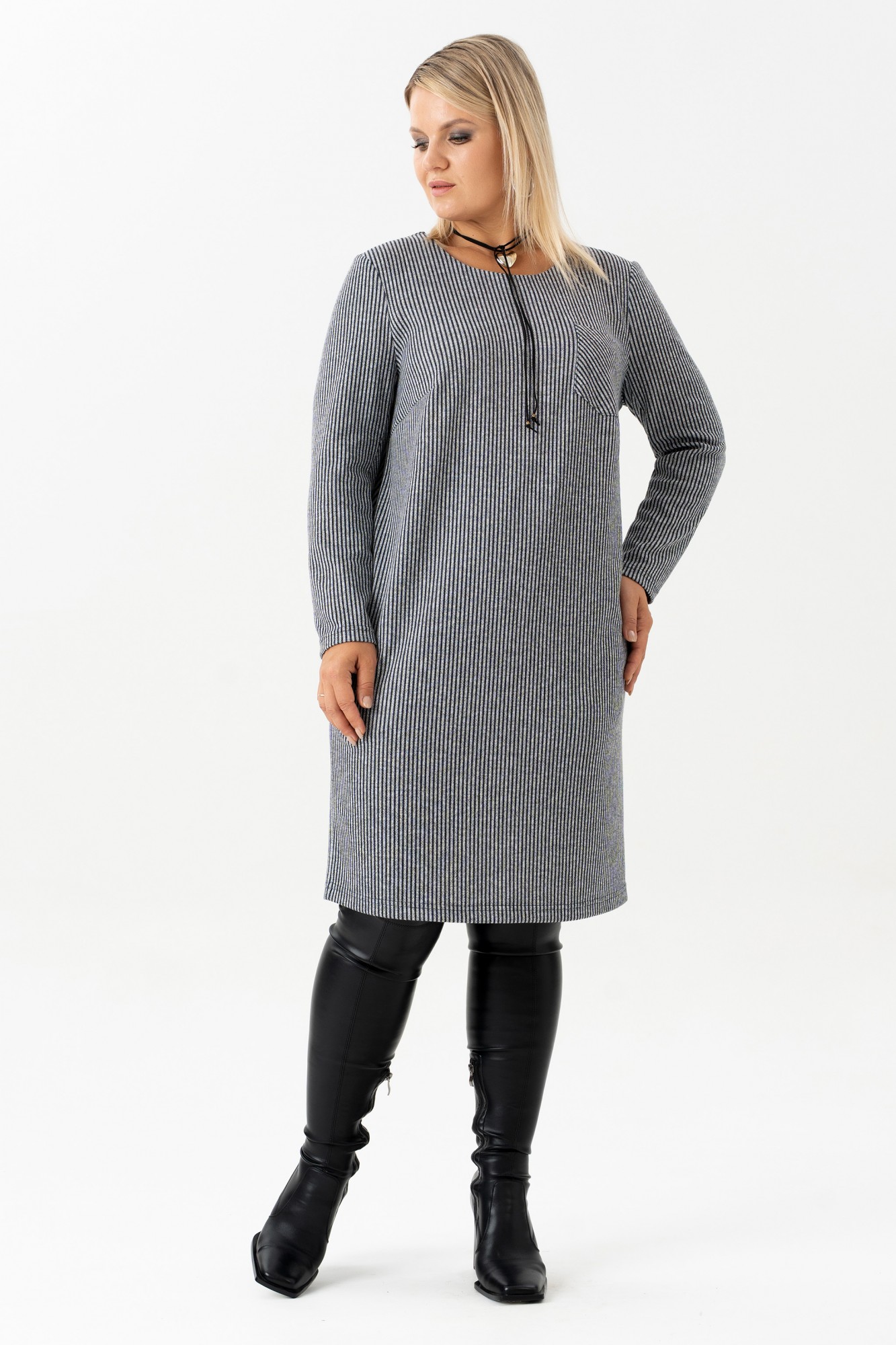 Платье с длинным рукавом в полоску - идеальный выбор для женщин, ищущих комфорт и стиль в повседневной одежде. Это платье длинной до колена, созданное без застежки для удобства надевания. Оно идеально подходит для офисной работы, а также для повседневного ношения благодаря своей легкости и практичности. Отсутствие подкладки делает его особенно удобным. Платье обеспечивает идеальный силуэт. Оно прекрасно сядет на любую фигуру. Фактура ткани добавляет текстуру и интерес к внешнему виду платья. Платье прямого силуэта с нагрудными выточками и накладным карманом в области груди. На платье обработаны карманы в боковых швах. Рукав длинный. Благодаря малой сминаемости трикотажа , вам практически не придется утюжить или отпаривать платье. Это изделие прямого свободного кроя позволяет не изменять любимому стилю и выглядеть всегда женственно и даже в холода: в осенний, зимний и весенний период. Чудесное платье на каждый день для девушки, стремящейся выглядеть модно. Платье большого размера отлично подойдет для работы, офиса и деловых встреч.