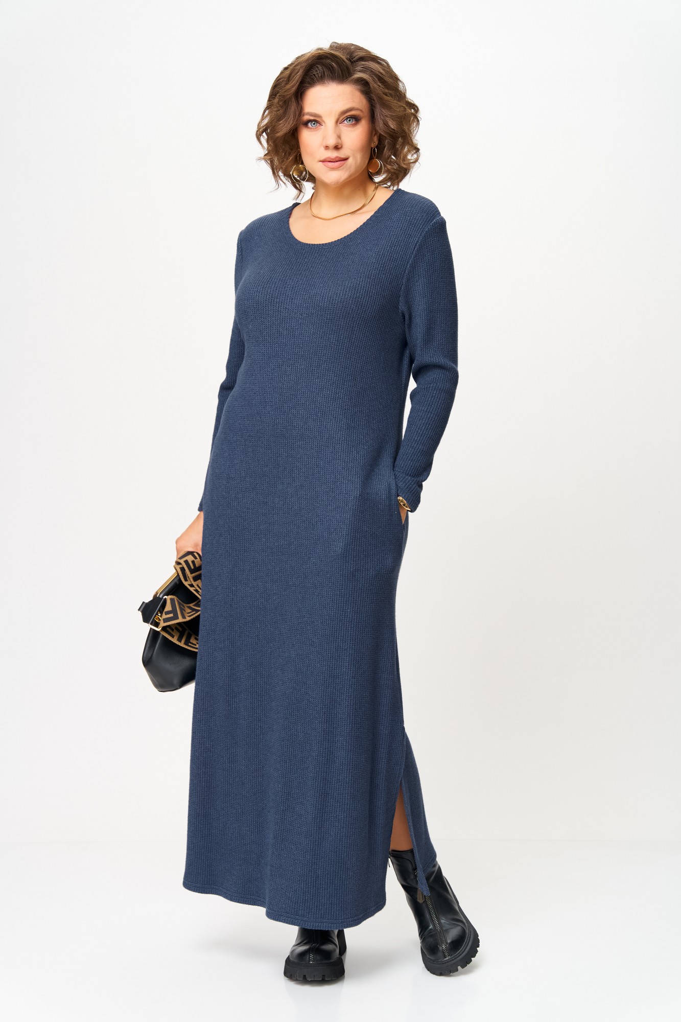 Свободное платье из трикотажного полотна лапша- идеальный выбор на каждый день. Мягкое, дышащее, оставляющее свободу движениям, с разрезами по бокам платья, превосходно подойдет для любого типа фигуры, а также для девушек больших размеров. Длинное платье можно комбинировать с любой обувью. Платье в стиле Бохо подойдет для офиса, долгих загородных прогулок, поездок и путешествий. Свободное платье - это комфортная и удобна домашняя женская одежда, одежда для беременных девушек, кормящих и молодых мам. Высококачественный, натуральный трикотаж абсолютно гипоаллергенен и безопасен в носке, а также не вызывает раздражений и позволяет коже дышать. Хороших покупок от Anastasia. По бокам -карманы. Рукав втачной.