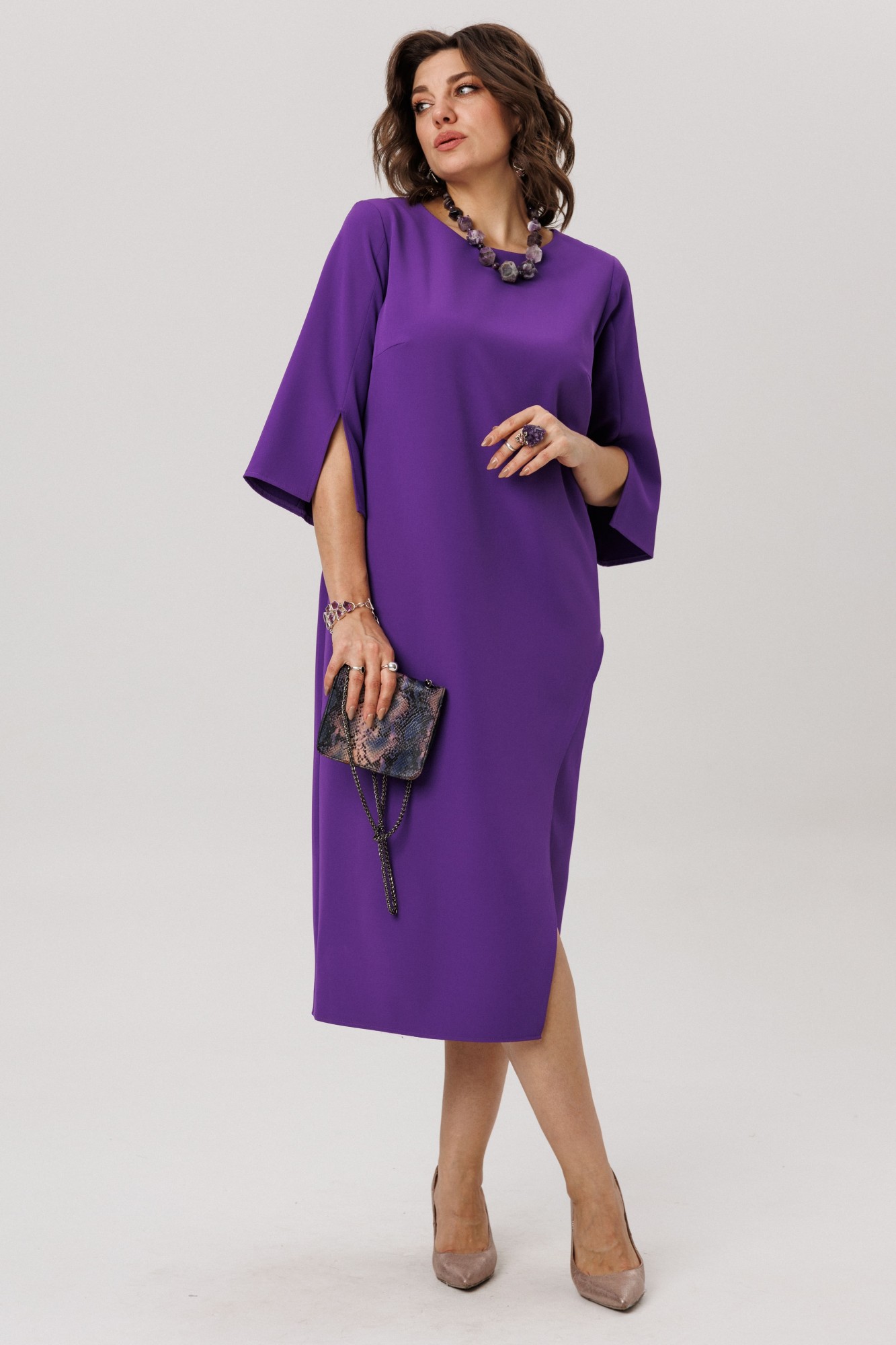 Созданное для особых случаев — будь то свадебный банкет или ответственный корпоратив, - это платье станет вашим верным союзником, позволяя чувствовать себя неотразимо и непринужденно на протяжении всего вечера. Палитра сочных и глубоких оттенков дает возможность выбрать цвет, который станет вашим личным заявлением, полным игривого обаяния и стиля как это платье в цвете «фиалковый ангел».