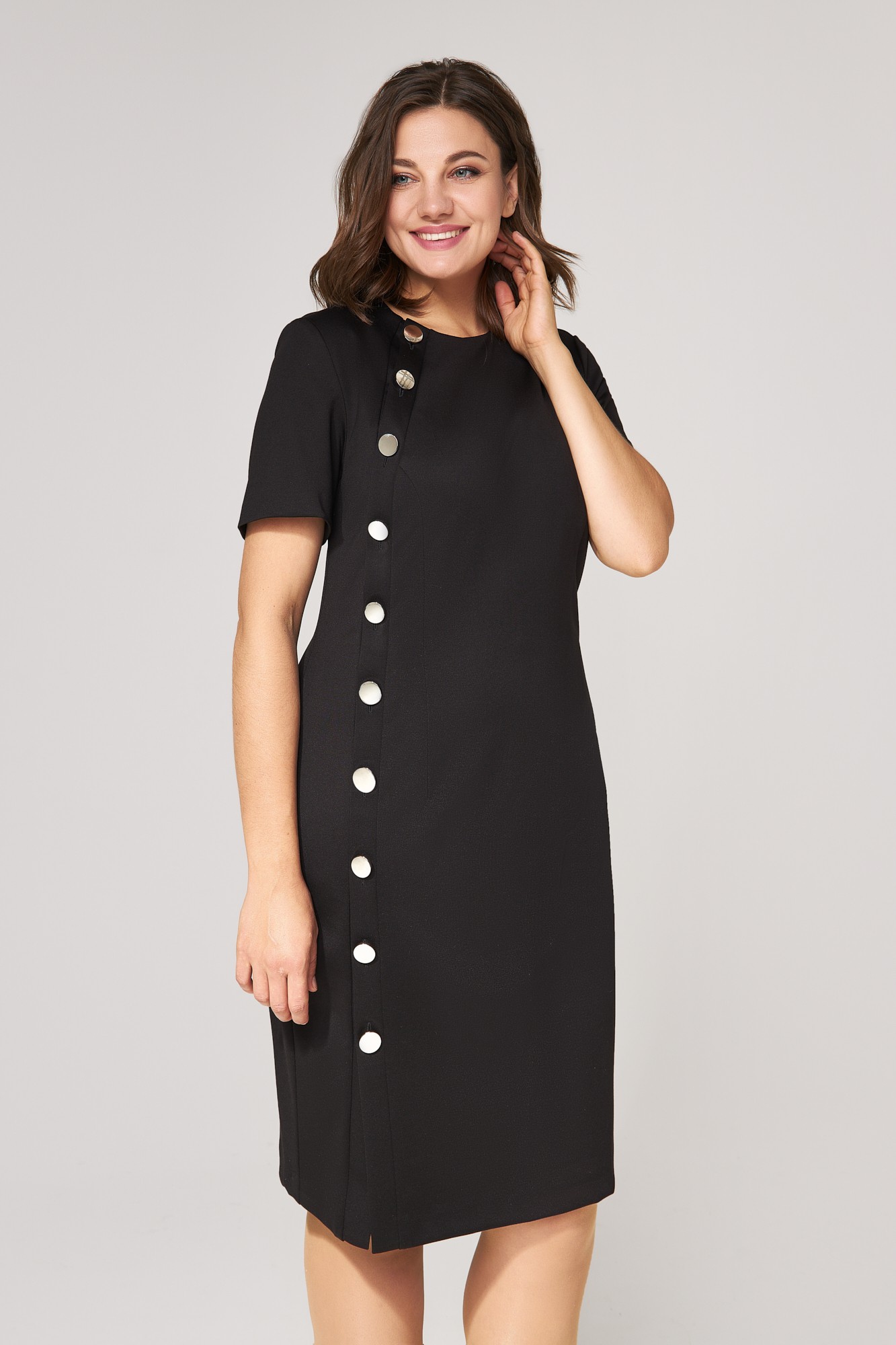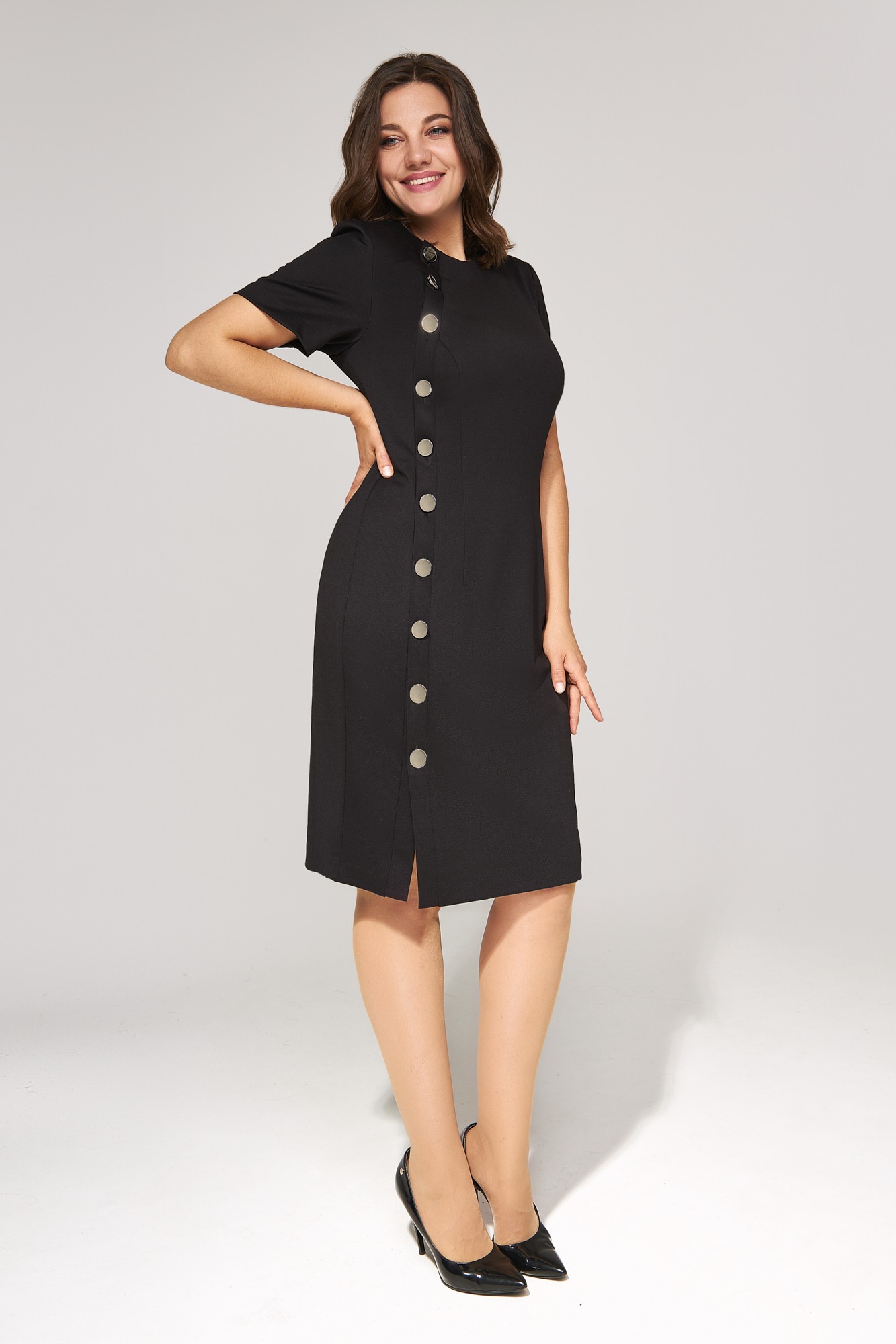 Платье женское прилегающего силуэта, выполнено из трикотажного полотна средней плотности, рукава втачные, по переду планка, застежка на петли и пуговицы.