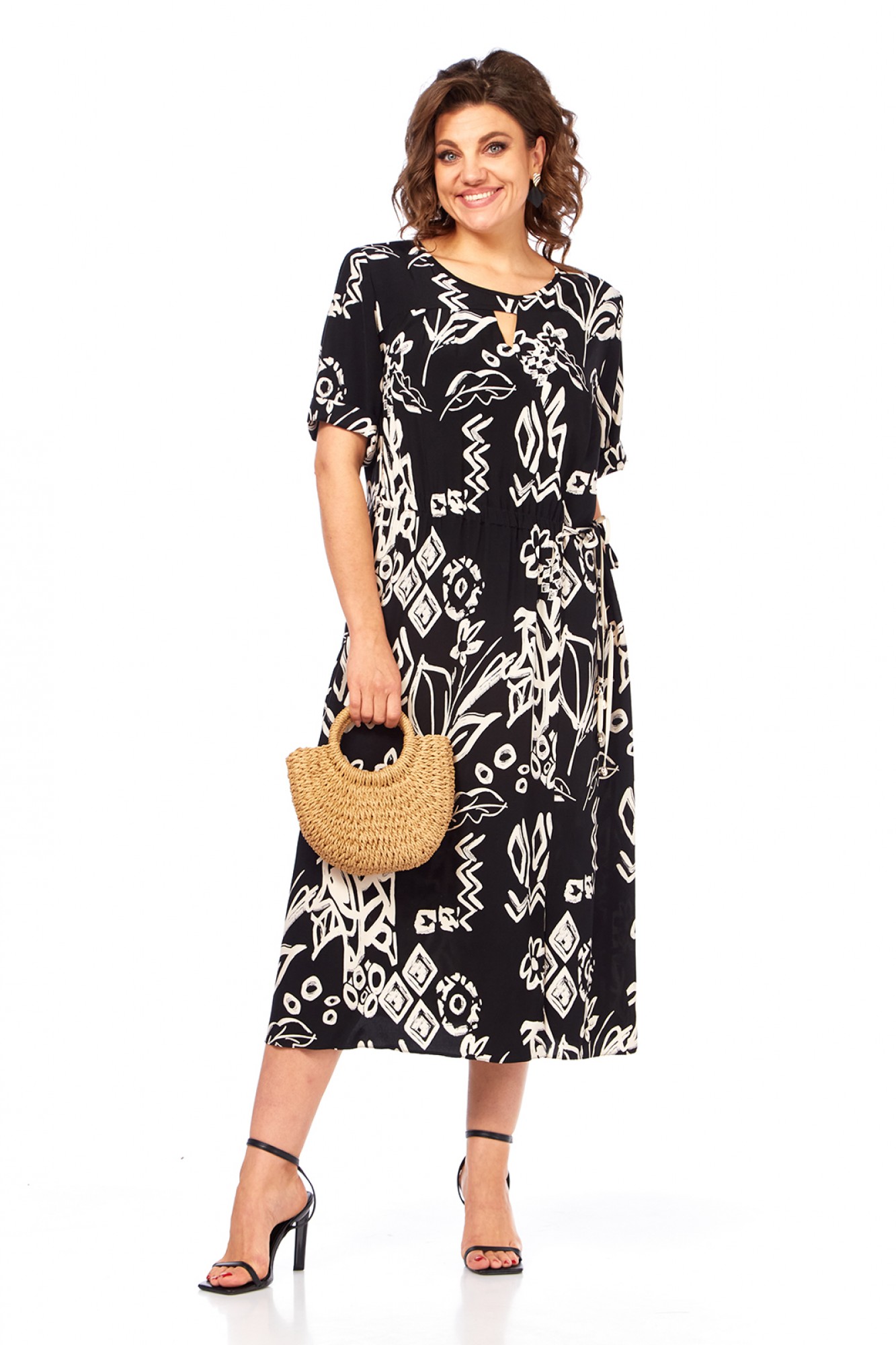 Платье женское, нарядное, А-силуэта, изготовлено из плательной ткани. Горловина круглой формы обработана окантовкой, на спинке застежка на петлю и пуговицу. Рукав втачной. Перед с асимметричным подрезом, в котором обработан вырез горловины и разрез. По линии талии имеется кулиса с декоративными завязками. В левой верхней части переда кокетка от которой заложены складки. Спинка цельнокроенная. Обращаем Ваше внимание, что цвет на экране может отличаться от реального.