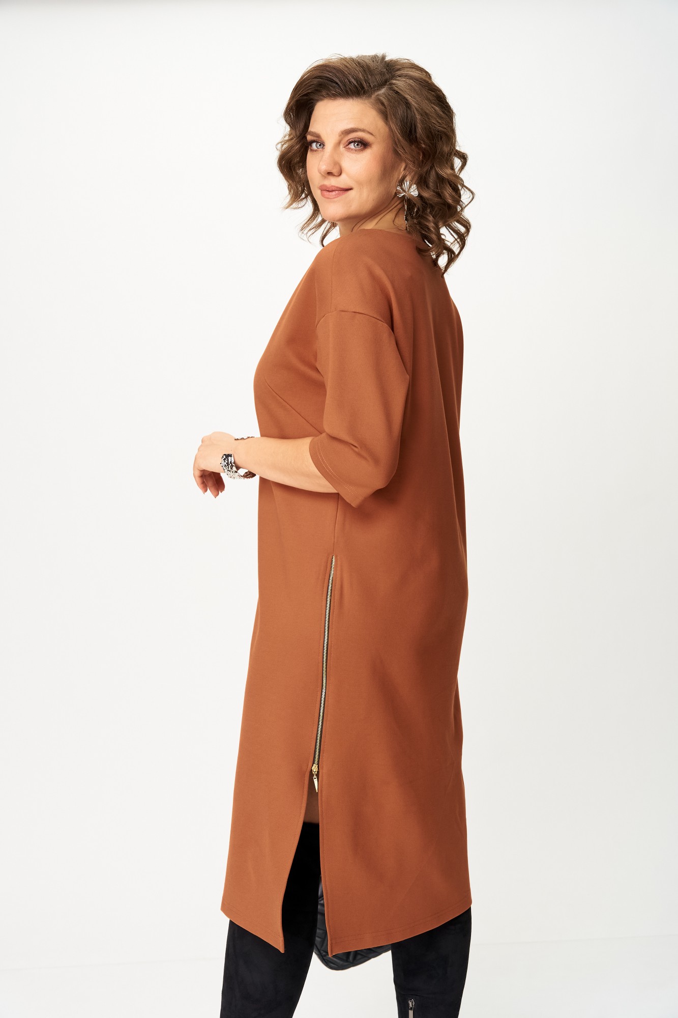 Эффектное и актуальное трикотажное платье. Изделие прекрасно подходящее для повседневной жизни, но также можно стилизовать под праздничный образ. Комфортный, прямой силуэт мягко сядет по фигуре и не будет сковывать ваших движений. Платье выполнено из приятного на ощупь трикотажа средней плотности, имеет спущенный рукав - длинной 7/8, по переду изделия карман. Украшением платья служит боковой разрез, который оформлен молнией. Платье прекрасно сочетается разной по стилю обувью.