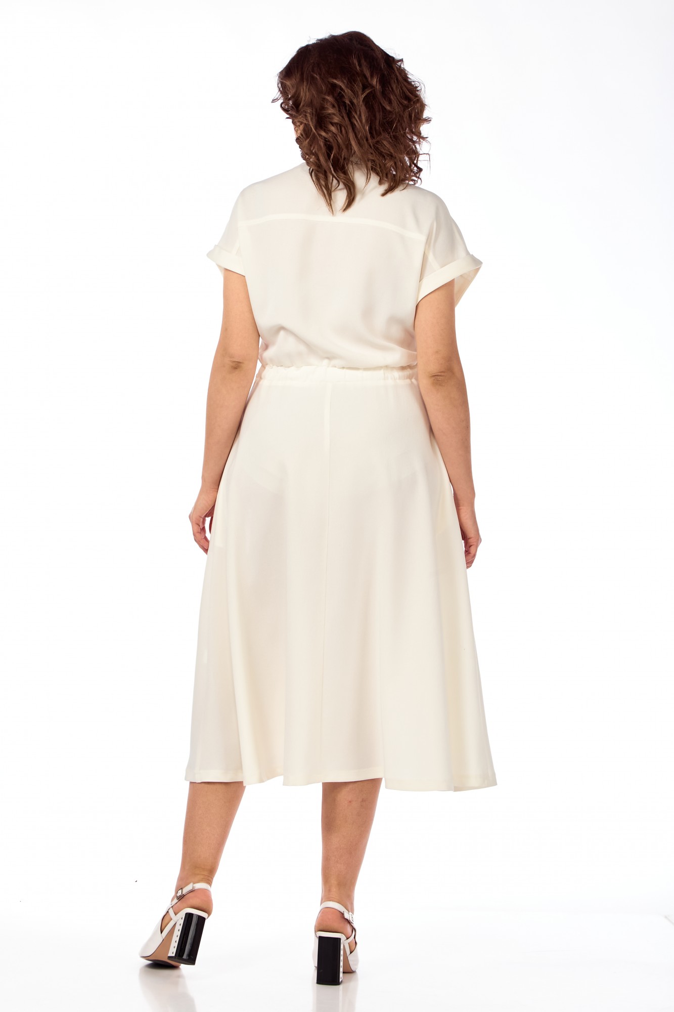 Повседневное женское платье из легкой ткани — лен вишер. Платье свободного кроя, отрезное по линии талии с притачным поясом на резинке. Перед и спинка с плечевыми кокетками. Лиф с центральной застежкой по борту на петли-пуговицы, воротник — стойка. По переду два накладных кармана с клапанами. Плечо спущено, рукав короткий. Юбка с легким клешением к низу. Имеются два боковых кармана в швах. Платье немного светится. Универсальность и практичность платья сделают его любимым в Вашем гардеробе.