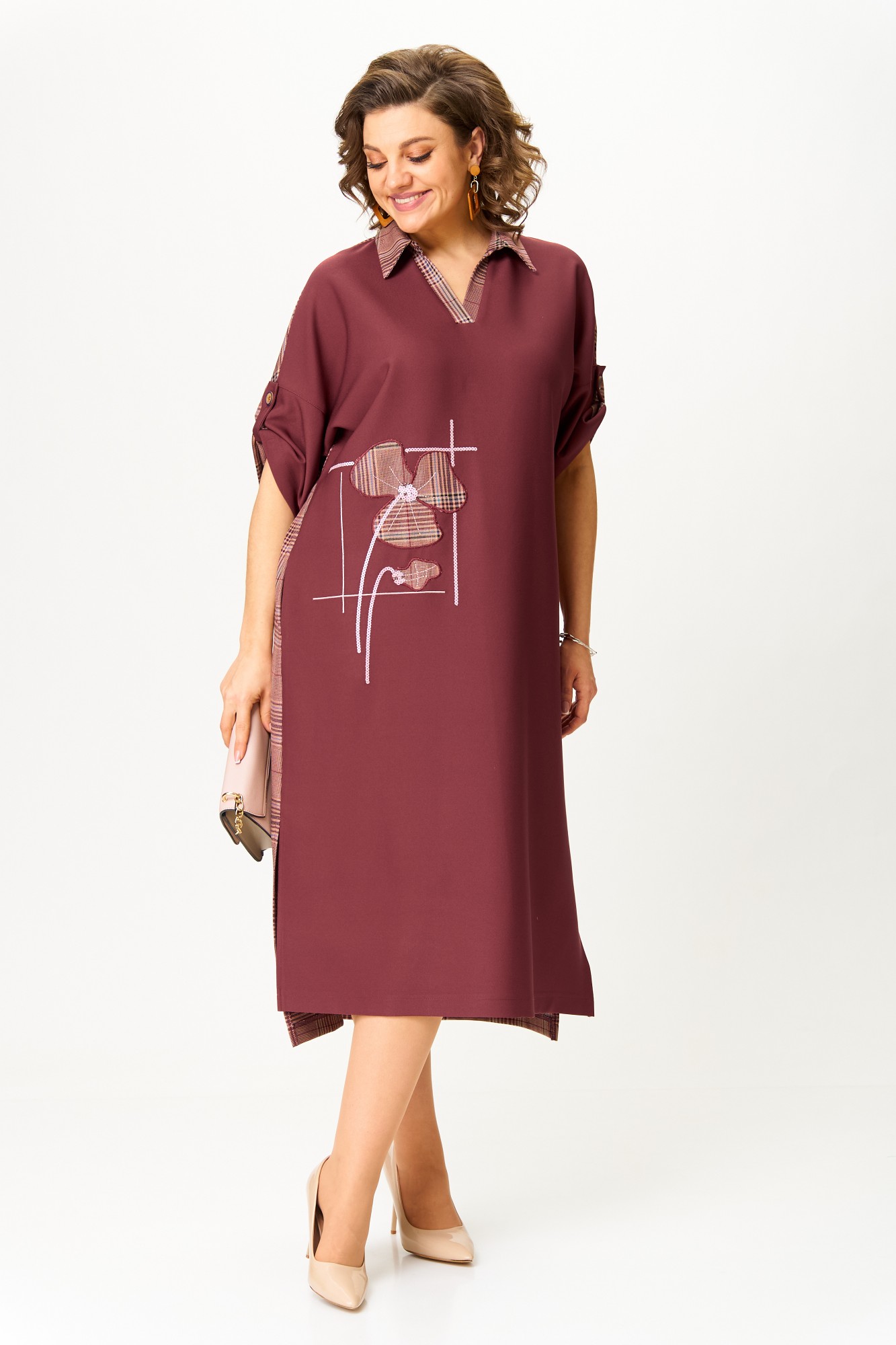 Универсальное платье в стиле «casual». Изделие выполнено из двух скомпонованных материалов — однотона и клетки. Перед и спинка цельнокроеные, спинка длиннее переда. Горловина с рубашечным воротником и V-образным вырезом. Плечо спущенное, рукав втачной длиной 3/4, застегивающийся на пату и пуговицу. По верху спинки имеется стачная встречная складка, благодаря которой имеется небольшое клешение. По переду платье украшено вышивкой из пайеток и ткани-компаньона. В боковых швах имеются карманы, а также боковые разрезы. Изделие может сочетаться как с кедами, лоферами, так и туфлями. Универсальность и практичность платья сделают его любимым в Вашем гардеробе.