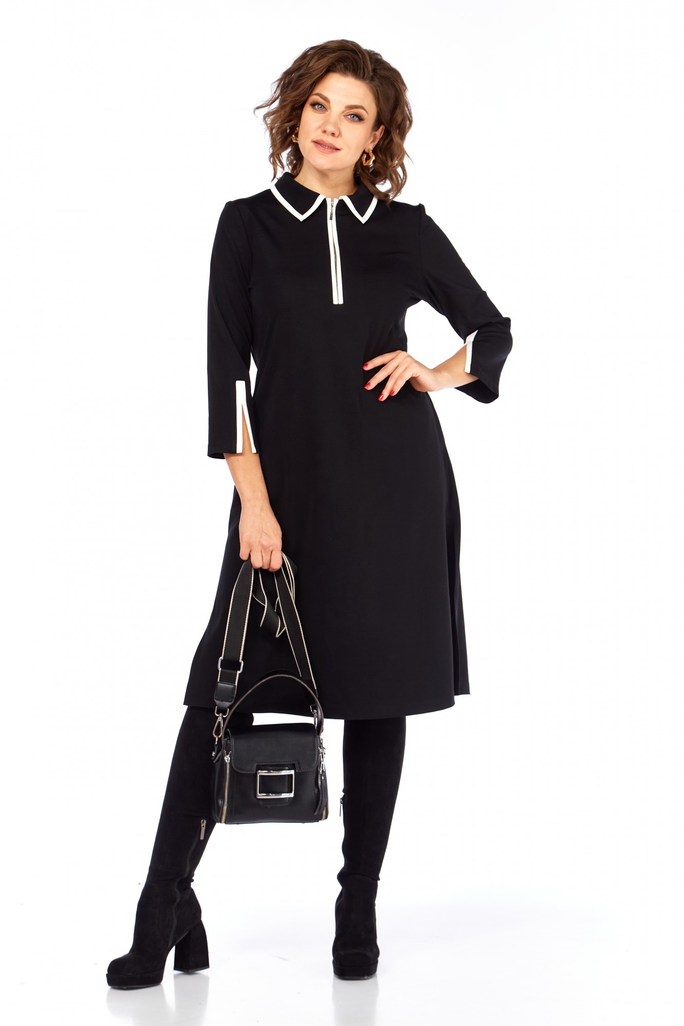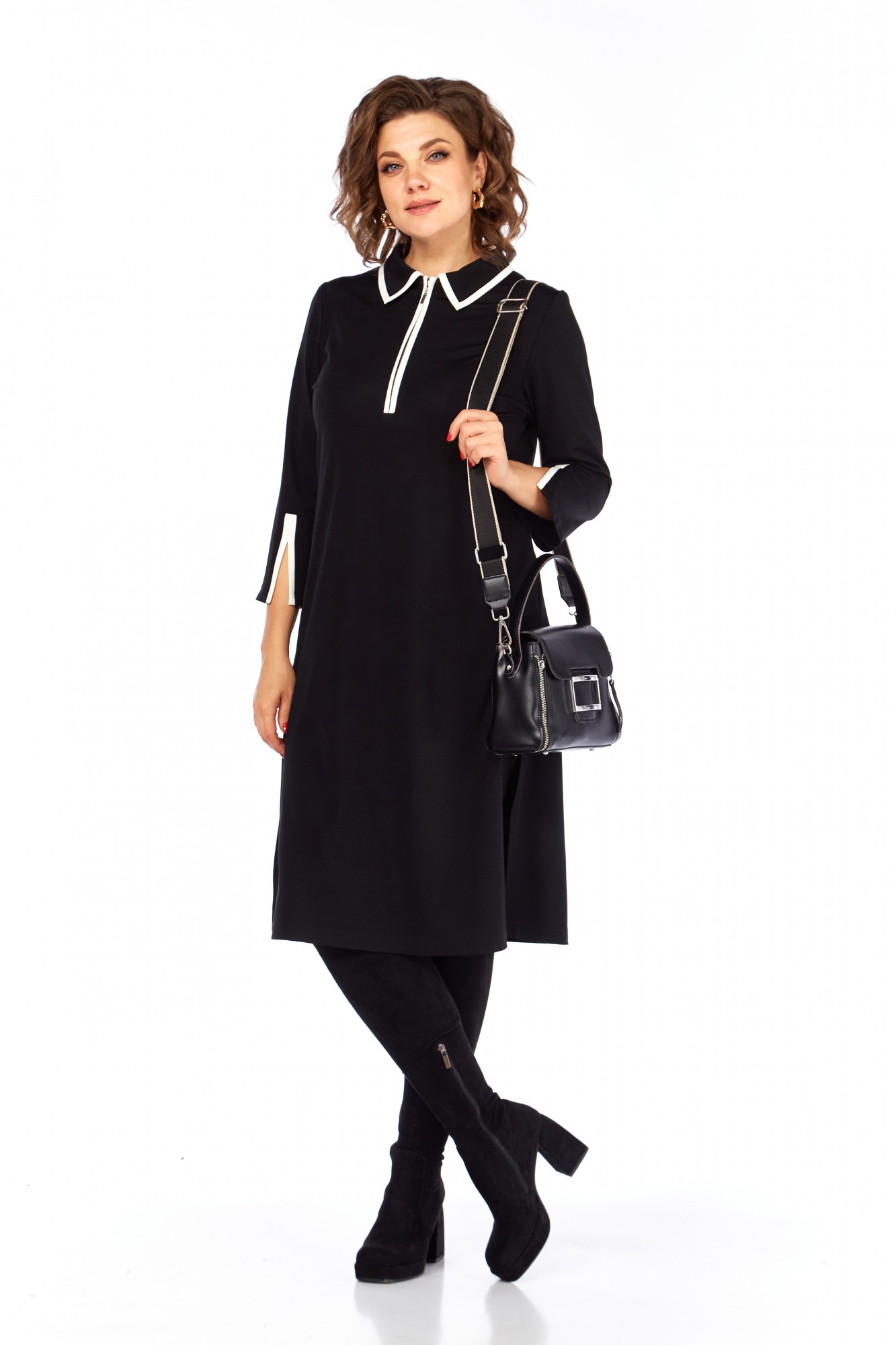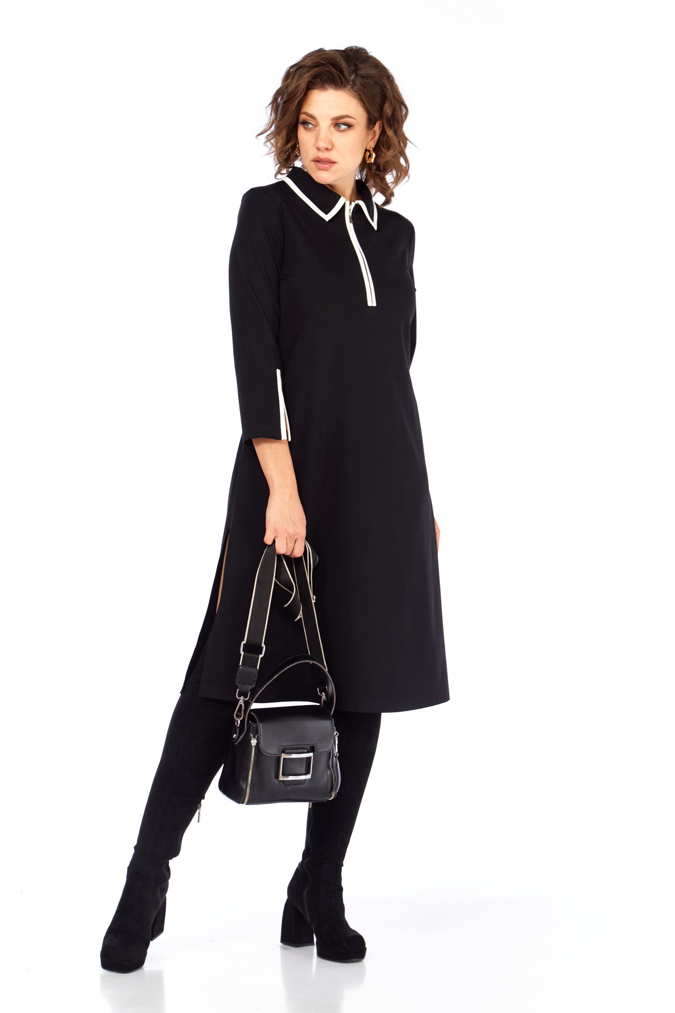 Платье Ольга Стиль С971 черный, белый воротник с ID товара 443427