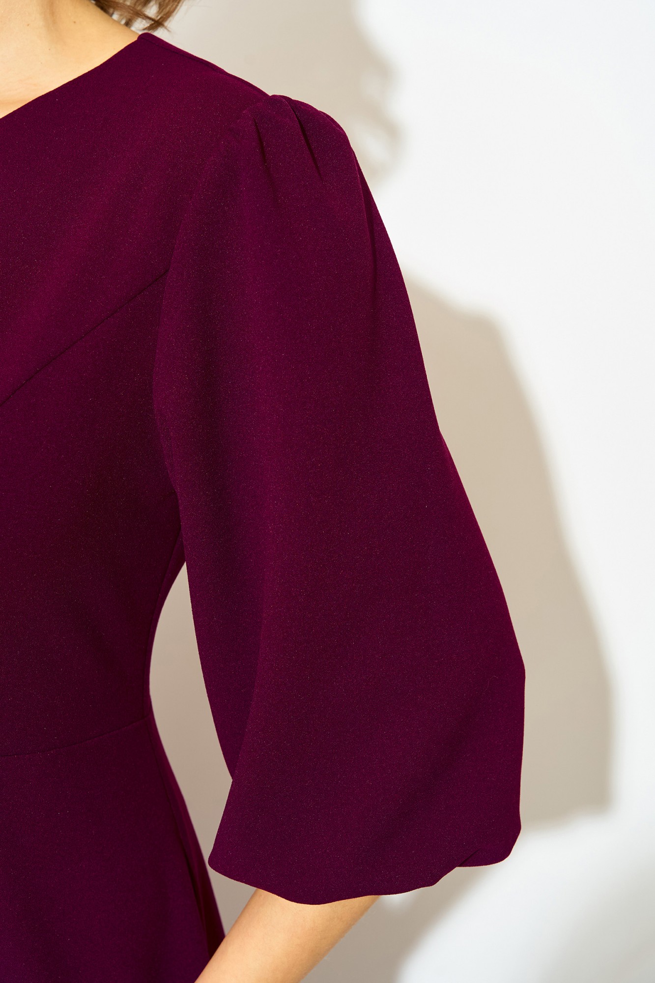 Волшебное и неповторимое - это женское платье с округлым вырезом горловины, созданное талантливым дизайнером олицетворяет элегантность и стиль. Выполненное из трикотажного крепового материала, это платье обеспечивает комфорт и свободу движений. Модель отрезная по линиям талии, с продольными рельефами по полочке. Юбка расклешена к низу – полу солнце. Эффектный рукав-фонарик длиной ¾-ти, присборен по окату и поставлен на трикотажную подкладку. Небольшая капелька по лифу крашена съёмными брошами в виде банта. Застежка – потайная тесьма-молния по спинке.
