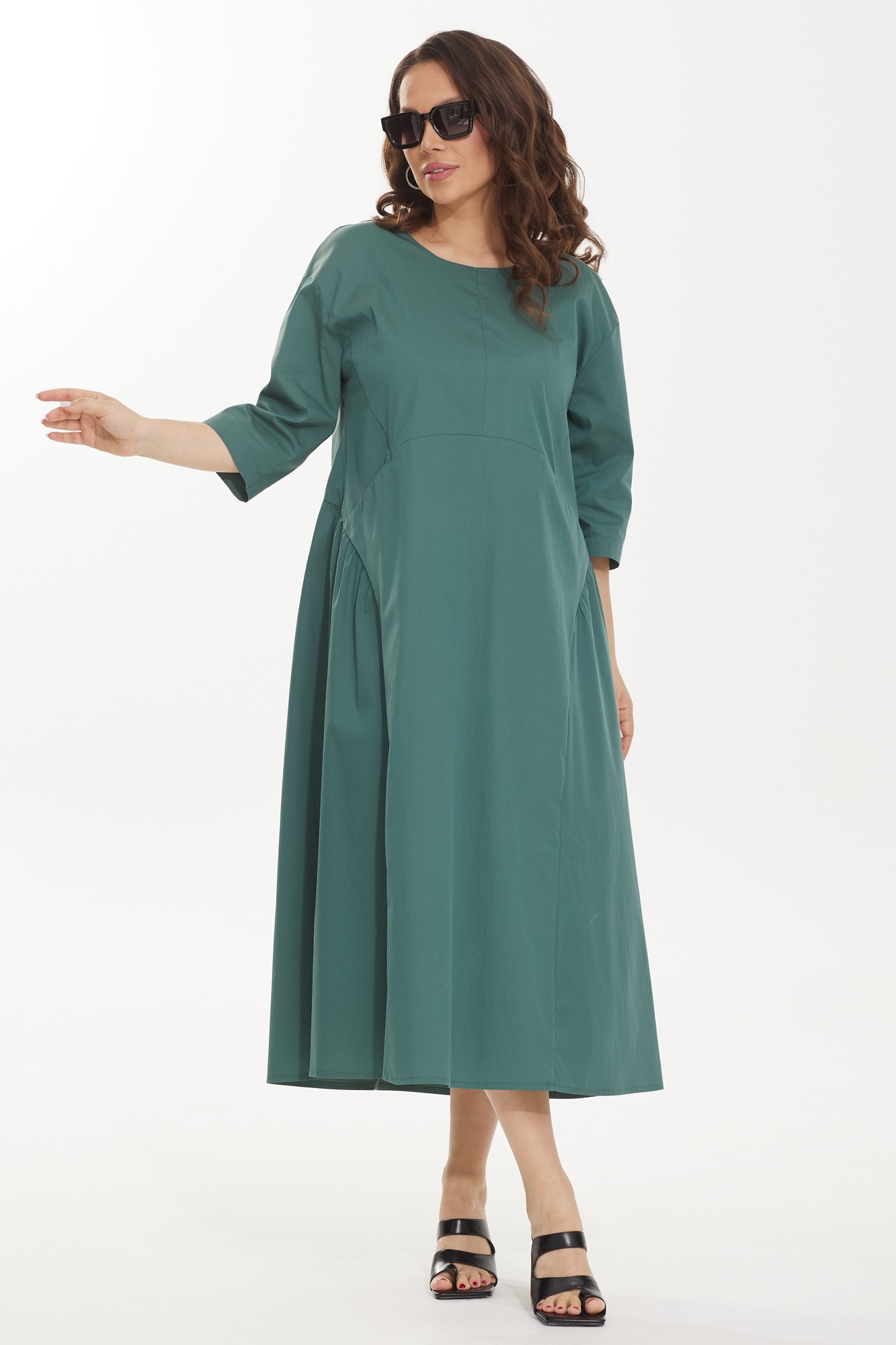 Стильное платье свободного кроя со слегка завышенной фигурной линией талии по переду. Рукав втачной, длиной ниже локтя. По спинке застежка на потайную молнию. Платье дополнено функциональными боковыми карманами.