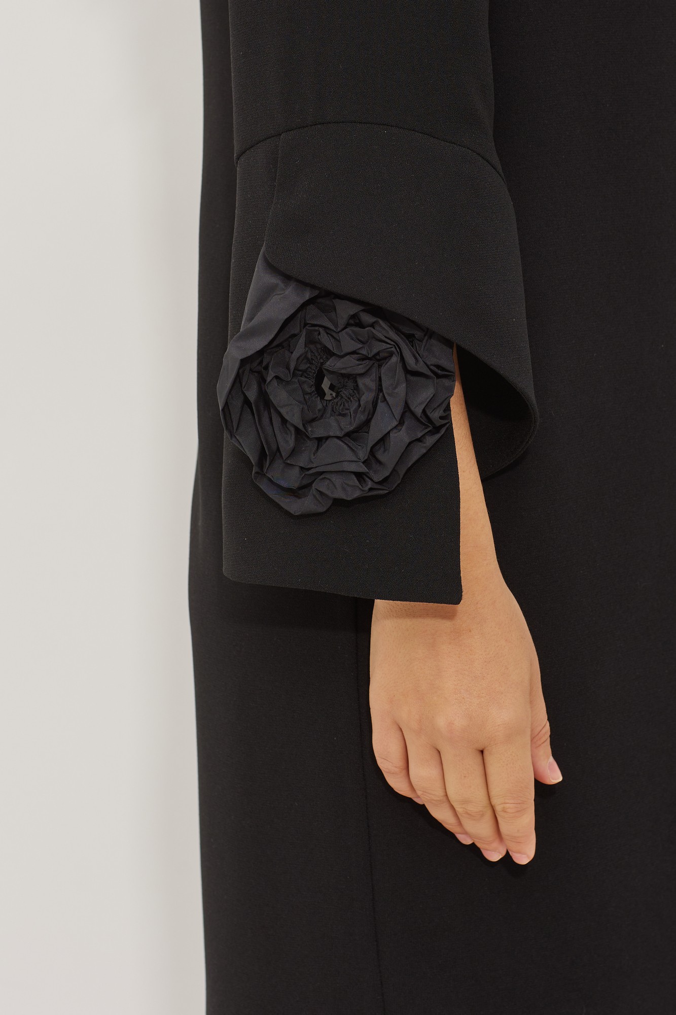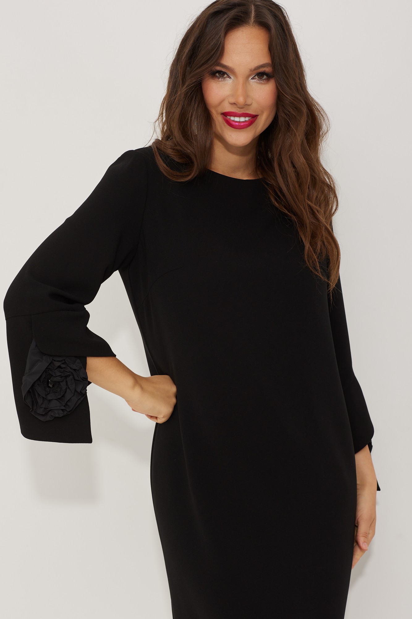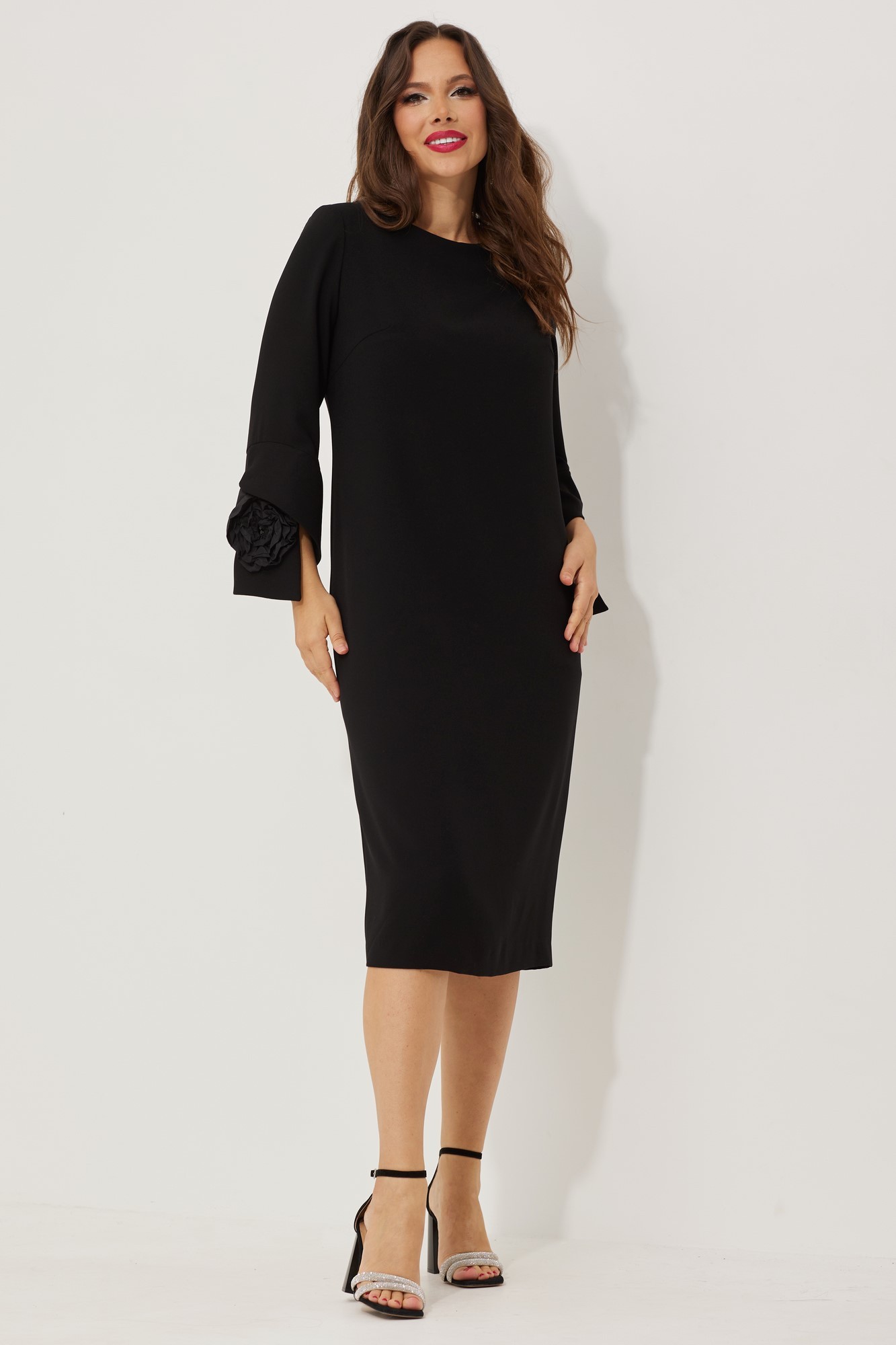 Элегантное платье полуприлегающего силуэта. Выполнено из костюмно-плательной ткани. Рукав втачной. Горловина округлой формы. По спинке застежка на потайную молнию. Оригинальный низ рукава придаст неповторимость вашему образу.