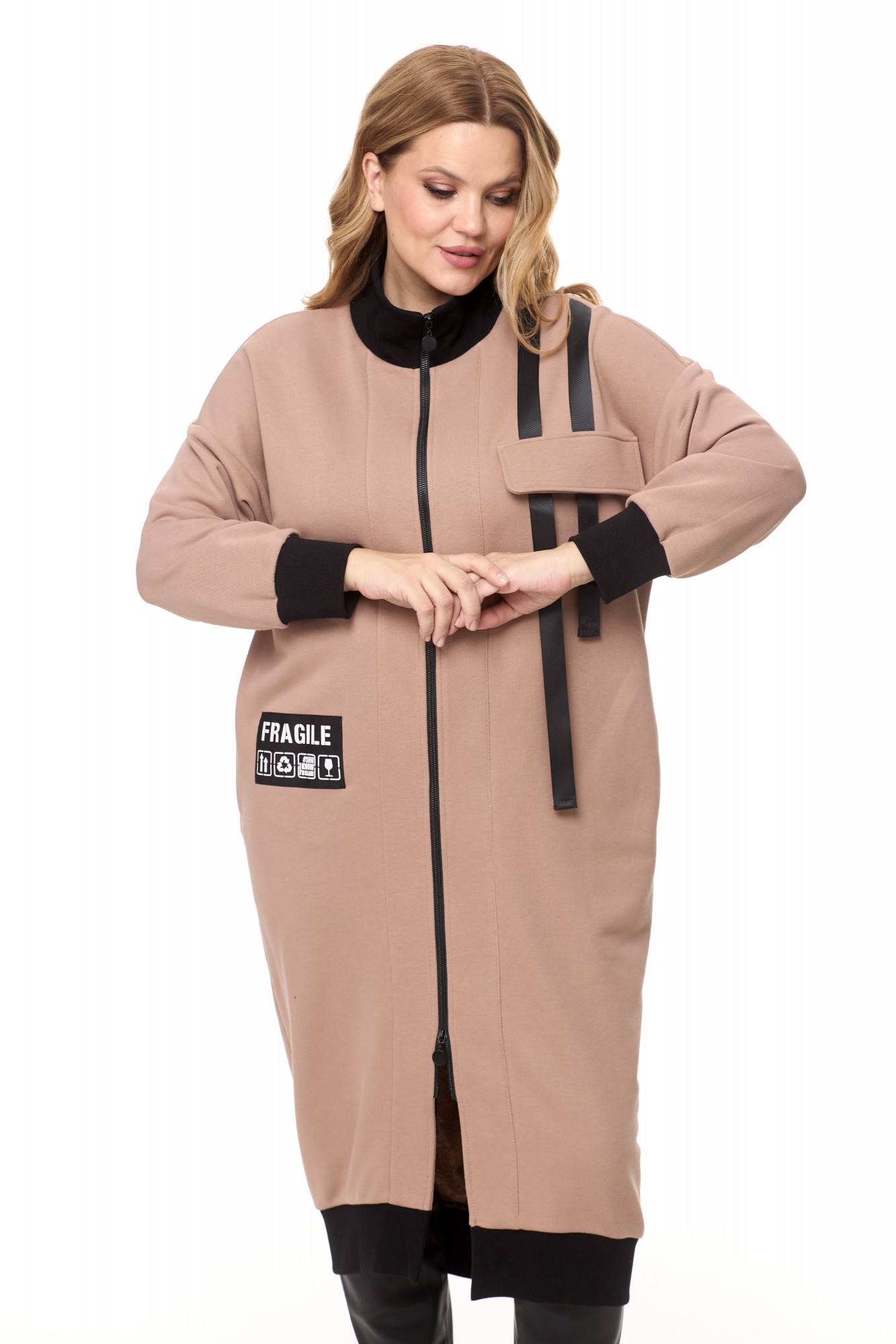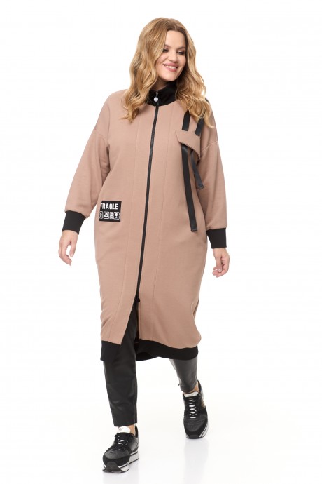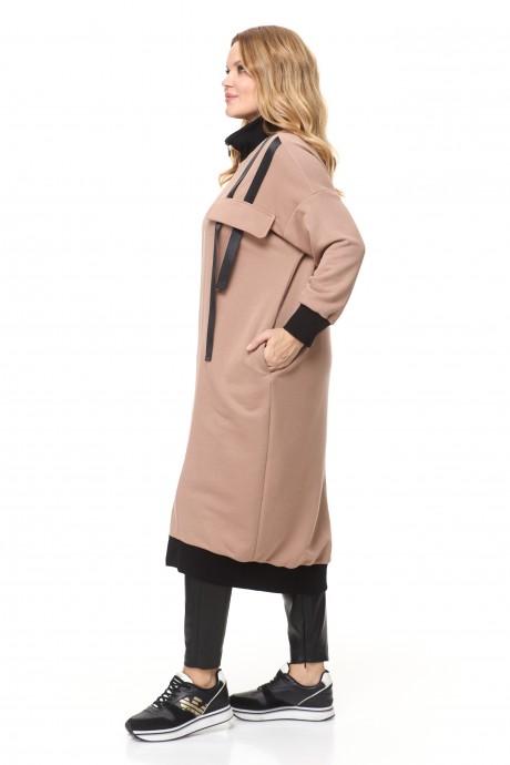 Универсальное трикотажное платье выполнено из футера трехнитка. Платье-кардиган станет идеальным и интересным изделием для создания повседневного образа. Платье длиной за колено, с центральной застежкой на молнию по переду, воротник — высокая стойка. Спинка у изделия цельная, плечо спущено, рукав втачной длинный одношовный на манжете, в боковых швах два функциональных карамана. Воротник, низ и манжеты выполнены из отделочного контрастного трикотажа. Декором платья служит нашивка и клапан-обманка, украшенный лентами. Платье-кардиган прекрасно сочетается с любой по стилю обувью, а также его с легкостью можно комбинировать с юбками и джинсами.