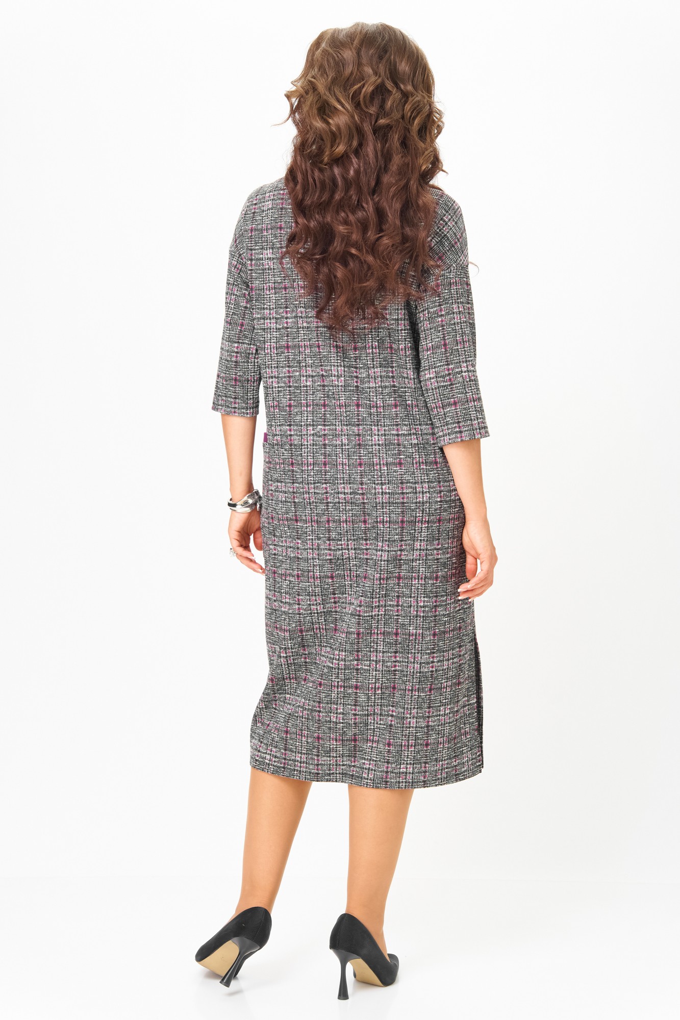 Особенности: Клетчатый принт в серо-бордовых оттенках придает образу изысканность и утонченность. Длина миди делает это платье универсальным для разнообразных поводов — от повседневных прогулок до более формальных мероприятий. Рукава 3/4 позволяют носить платье как в прохладную, так и в теплую погоду, обеспечивая дополнительное удобство. Круглый вырез добавляет образу нежности и женственности. Элегантный прямой силуэт и боковой разрез гарантируют комфорт и свободу движений на протяжении всего дня. Это платье станет отличным дополнением вашего гардероба, позволяя создавать разнообразные стильные образы как для работы, так и для отдыха или особых случаев.