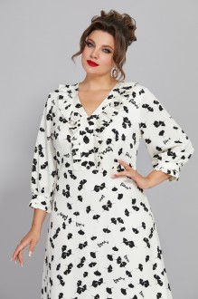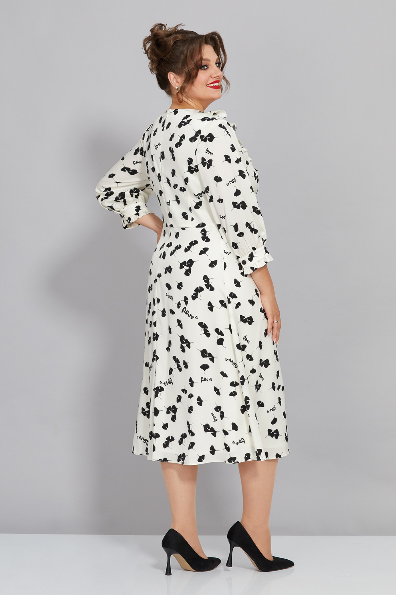 Женское платье, полу-прилегающего силуэта, выполнено из принтованной плательной ткани, на трикотажной подкладке. Лиф платья отрезной по линии талии, с вытачками, вырез горловины V-образной формы, обработан обтачкой и присборенной рюшей из основной ткани. Юбка платья расклешенного силуэта, спинка идентична полочке, со средним швом и вытачками, в среднем шве потайная молния. Рукав втачной, оптимальной длины, присборен по низу на манжет с рюшей. Элегантное платье, в стильных расцветках отличный выбор для офиса и торжественного случая!