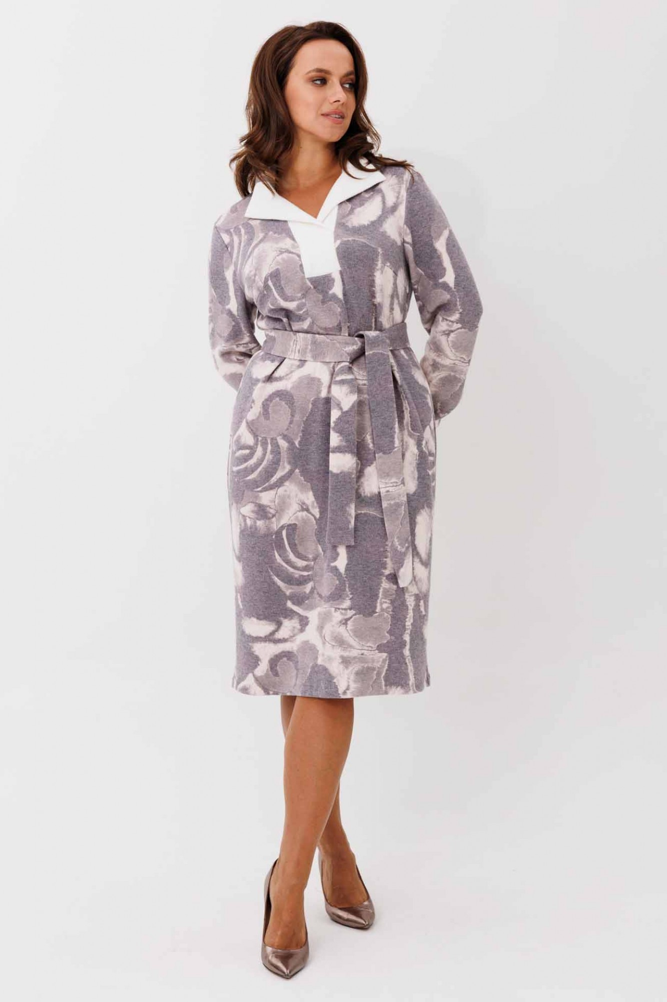 Длина миди делает платье универсальным — в нем одинаково удобно и в офисе, и на прогулке. Перед оформлен нагрудными вытачками, спинка — со средним швом и аккуратной шлицей. Рукава втачные, с мягкими манжетами по низу, горловина дополнена планкой и стойкой. Пояс из основной ткани помогает подчеркнуть талию и завершает элегантный образ. Платье гармонично сочетается с сапогами, лоферами или кроссовками — подойдет для любого стиля и настроения. Идеально сидит на фигуре в диапазоне размеров от 46 до 56.