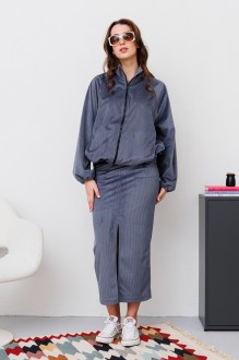 Утончённое комбинированное платье прилегающего силуэта длиной макси. На деталях полочек фигурные рельефы. Застежка платья на разъемную молнию в среднем шве полочки. На спинке средний шов и фигурные рельефы.Рукав реглан длинный и двухшовный. Вырез горловины округлой формы, оформленный отложным воротником.