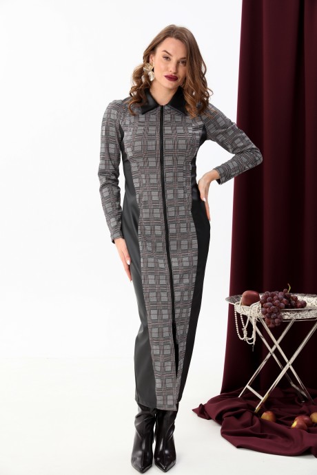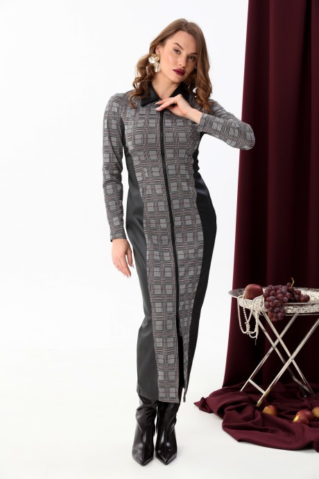 Платье NikVa н426 -3 серая клетка+чёрный